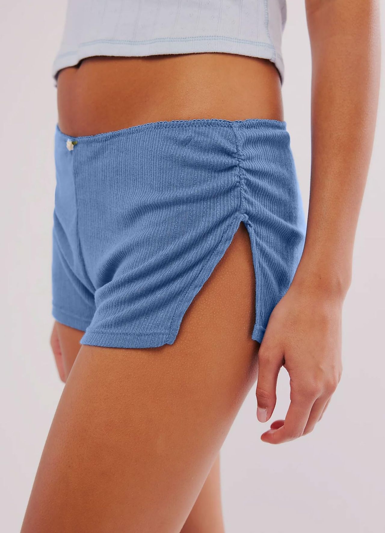 - ✿estilo: Micro Shorts Femininos Com Fenda Lateral, Micro Shorts Fofos, Sexy, Adorável À Noite E Cheio De Charme. Serve Para Primavera, Verão, Inverno E Outono. Estilo Sem Fecho, Cintura Elástica, Shorts De Roupa Íntima, Enfeite Floral Na Frente, Detalhes De Fenda Lateral Com Franzido.