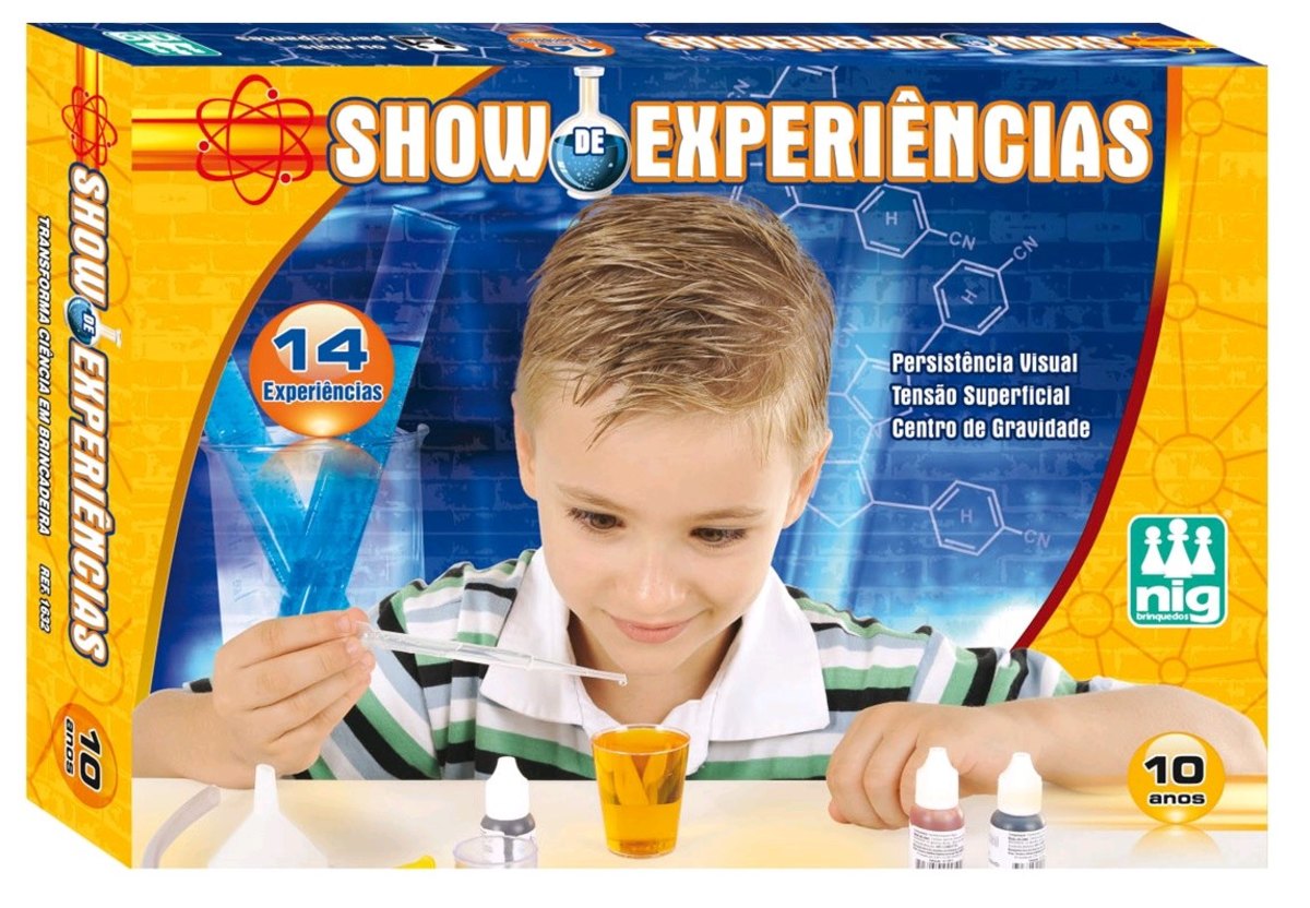Show de Experiências - Nig..São 14 experiências incríveis que são uma verdadeira aula de ciências. Entre os componentes estão pipeta, tubo de ensaio, corantes, canetinhas, bexiga, detergente, papel indicador e outros. Ao final de cada experimento, o jovem cientista vai encontrar a explicação de todos os fenômenos testados.