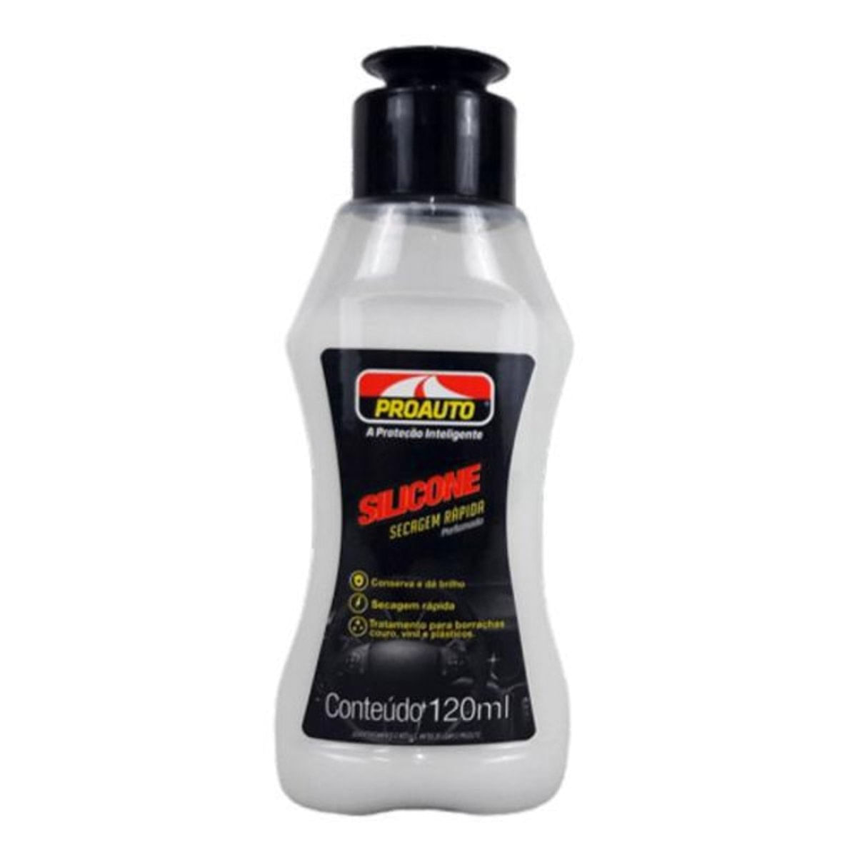 Silicone Secagem rápida, restaura borrachas, couro, vinil e plásticos..-proteção UV.-conserva e dá brilho.-longa Duração.-efeito Imediato.-sem uso de solvente.-protege das ações do tempo.Modo de Usar:.Limpar a área com limpador multiuso Proauto e pós a limpeza da área espalhe o produto uniformemente com uma esponja limpa e seca. Dando um brilho uniforme em toda a superfície. Não aplicar em vidros, tecidos e pedais, para evitar superfícies escorregadias..Produto não Inflamável