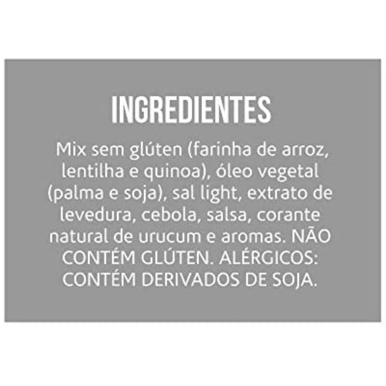 Ingredientes: Grãos Integrais (milho, Arroz, Trigo, Centeio, Cevada E Aveia), Óleo De Palma, Açúcar, Sal, Cebola Em Pó, Salsa Desidratada, Extrato De Levedura, Realçadores De Sabor (glutamato Monossódico, Inosinato Dissódico, Guanilato Dissódico), Acidulante Ácido Cítrico, Antioxidante Tocoferol E Corante Natural Urucum.
