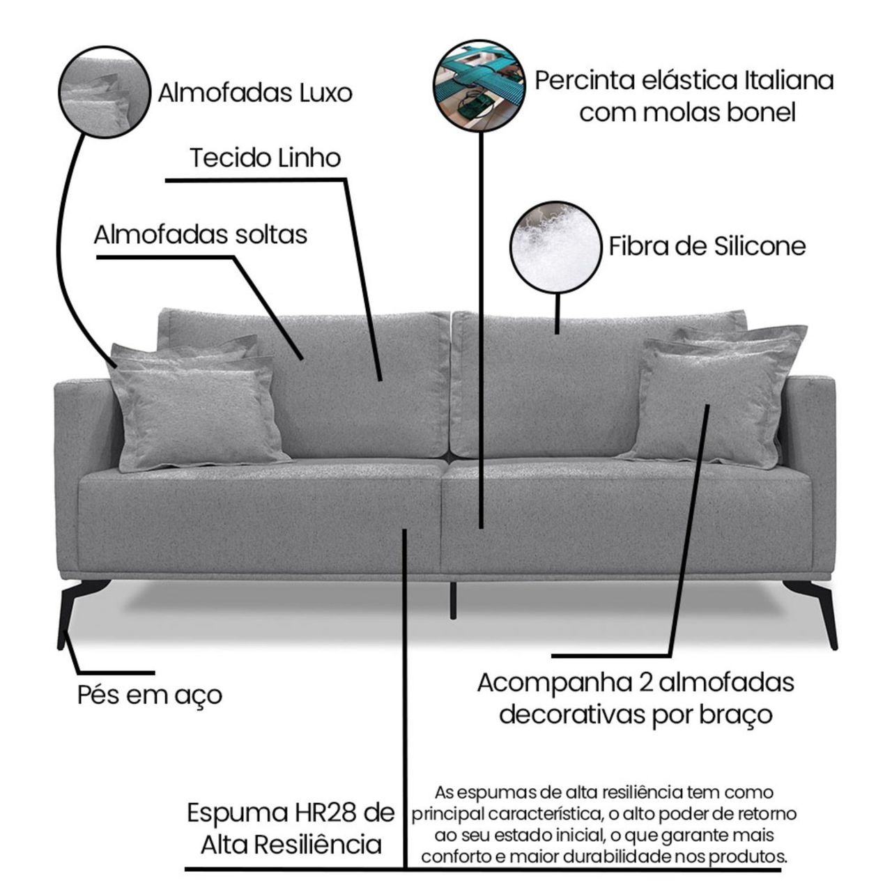 Sofá 2 Lugares 180cm Linho Lion Cinza.