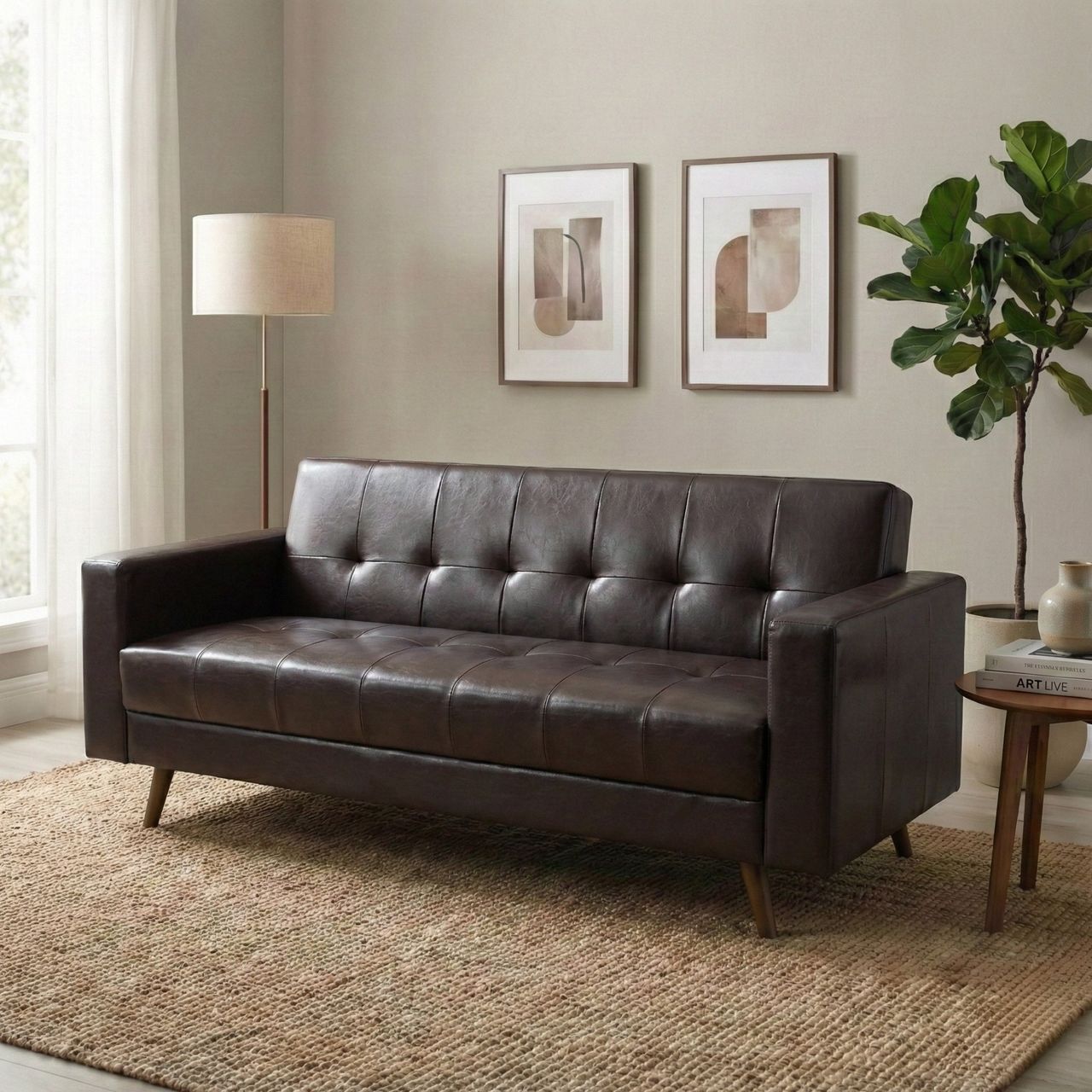 Sofá 3 Lugares Corino Escritório E Recepção Vitrola Marrom Marrom.