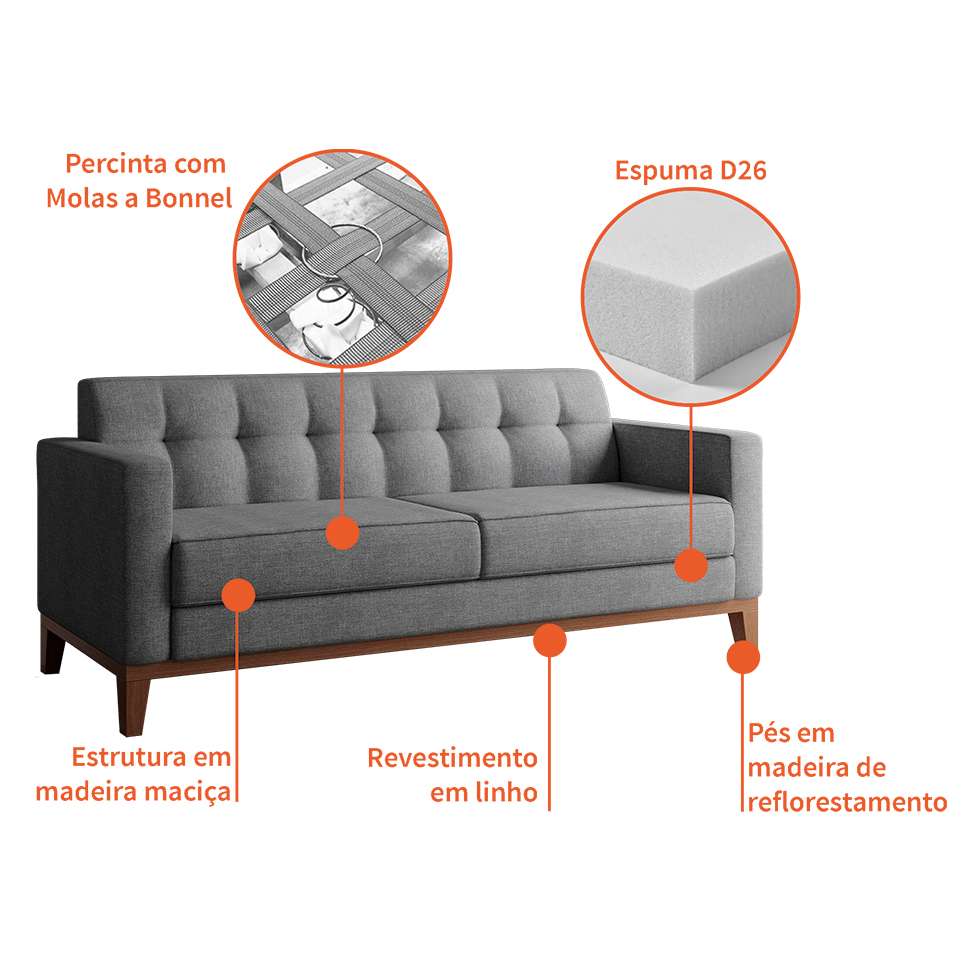 Pensado para quem quer aliar bom gosto + uma estrutura reforçada para o uso diário, a peça tem madeira de reflorestamento na composição e revestimento em linho para garantir que a receptividade seja plena.