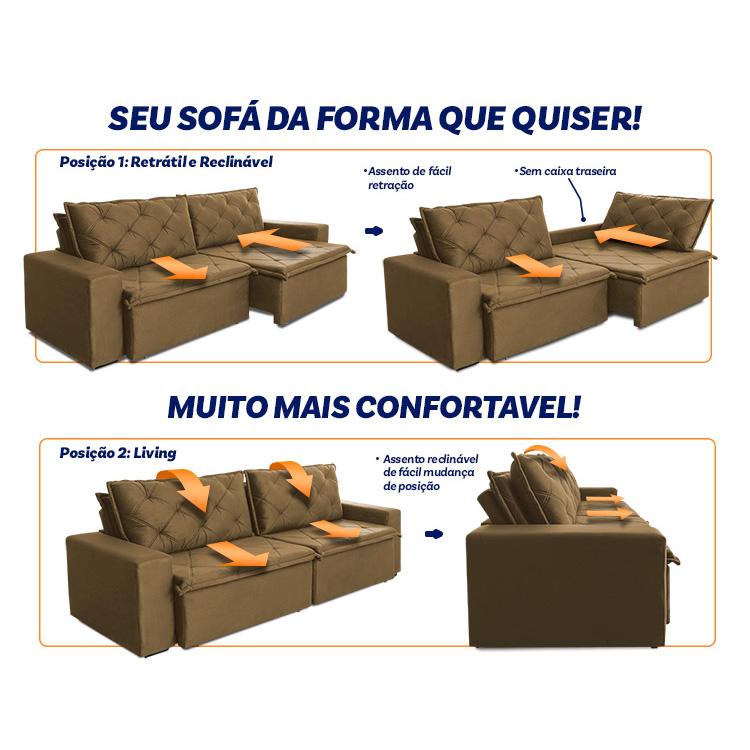 Dica Importantegostou Do Produto, Mas O Tamanho Não Se Encaixa Em Seu Ambiente, Ou Então Você Tem Preferência Por Outra Cor ?não Tem Problema, O Sofá Bangkok Está Disponível Em 5 Medidas E 7 Cores Diferentes Para Que Se Adapte A Qualquer Ambiente E Agrade A Todos Os Gostos :)medidas: 2,10m, 2,30m, 2,50m, 2,70m, 3,00mmateriais: Suede Velutcores: Azul, Bege, Cinza, Marrom, Preto, Tabaco E Vermelhocaso Você Tenha Interesse Em Visualizar Os Anúncios De Alguma Das Opções Acima, Basta Efetuar Uma Busca De Acordo Com As Opções Descritas.introdução Ao Produtoestá Com Dificuldade De Encontrar Um Sofá Que Encaixe Perfeitamente Na Sua Sala? Todas As Opções Que Encontrou Ocupa Um Grande Espaço Devido A Sua Caixa De Assento Retrátil? Temos A Solução!o Sofá Sem Caixa Retrátil Reclinável Bangkok Chegou Para Solucionar O Seu Problema, Com Um Design Elegante E Sem Perder A Flexibilidade De Um Retrátil Reclinável, O Sofá Bangkok Não Possui Uma Caixa Traseira, O Seu Assento Retrátil Utiliza O Encosto Reclinável Para Estender A Sua Dimensão Base, Dessa Forma Você Consegue Utiliza-lo De 3 (três) Maneiras Diferentes: Na Posição Living, Retrátil E Sofá Cama.ele Também Possui Duas Almofadas Destacáveis Que Se Adequa A Posição Que Desejar, Sem Mencionar Que É Muito Elegante E Confortável!e Não Para Por Aí A Sua Estrutura Interna É Composto De Madeira 100% De Reflorestamento Tornando-o Resistente, E Seu Assento Conta Com Espuma D33 E Molas Espirais, Transformando Seu Sofá Em Um Verdadeiro Aconchego Para Assistir Seu Filme Favorito, Tirar Aquela Soneca Que Você Aguarda Após Um Dia Agitado E Estressante, Ou Dar Aquela Maratonada Na Série Que Você Adiava Tanto Tempo Por Não Ter Encontrado O Sofá Certo, Até Agora!otimize O Seu Espaço E Não Perca Mais Tempo, Garanta Já O Seu Sofá Bangkok!características- Capacidade: 2,30m, ( 3 Pessoas Ou Mais).- Quantidade De Assentos: ( 2 Assentos).- Peso Real Suportado: 120kg Por Pessoa- Encosto Reclinável De 5 Posições- Almofadas Do Encosto Em Fibra Siliconada E Flocos De Espuma- Assento Retrátil Com Molas Espirais E Espuma D33- Braço Com Espuma D28- Estrutura Em Madeira De Reflorestamento, Eucalipto E Pinusdimensões (produto Montado)- Sofá Em 2 Módulos Para Facilitar Transporte- Altura: 1,05m- Largura : 2,30m- Profundidade: 1,20m- Profundidade Aberto: 1,75mmontagema Montagem Do Produto Pode Ser Feita Facilmente Seguindo O Manual De Instruções Que Acompanha A Embalagem Do Produto. Não É Necessário Técnico Especializado.garantia: 90 Diasinformações Relevantes- Não Nos Responsabilizamos Pela Instalação E Montagem- Antes De Efetuar A Compra, Verifique Cuidadosamente As Dimensões Do Produto, Certificando-se De Que O Mesmo Poderá Ser Transportado Por Portas, Corredores E Elevadores, Evitando Inconvenientes Durante A Entrega- Não Nos Responsabilizamos Pelo Transporte Por Escadas, Elevadores, Guincho Ou Içamento Do Produto. Todas As Despesas Associadas A Esses Serviços São De Responsabilidade Do Cliente.- Não Nos Responsabilizamos Por Entregas Em Zonas Rurais, Fazendas, Vias Não Pavimentadas Ou Sem Endereço Bem Identificado E Mapeado Por Equipamentos Gps, Mesmo Que A Zona Rural Esteja Inscrita Em Região Metropolitana. As Entregas Nessas Localidades Estão Sujeitas A Cobranças Adicionais Para Execução Com Operação Dedicada, Mediante Prévia Negociação Com O Cliente. Não Há Um Valor Fixo Determinado, Pois A Dificuldade Excessiva E Custos Podem Variar Caso A Caso- As Imagens São Meramente Ilustrativas, Podendo Ocorrer Variações De Tonalidades Nos Tecidos Devido Às Variações Nas Configurações De Monitores Ou Telas.- Os Objetos Decorativos Nas Imagens Não Acompanham O Produto.- Não Realizamos Trocas Por Outros Modelos Ou Medidas Diferentes. Certifique-se De Escolher O Produto Correto Conforme Suas Necessidades- Prestamos Assistência Técnica Exclusivamente Para Defeitos De Fabricação.