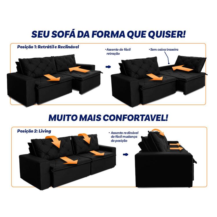 Dica Importantegostou Do Produto, Mas O Tamanho Não Se Encaixa Em Seu Ambiente, Ou Então Você Tem Preferência Por Outra Cor ?não Tem Problema, O Sofá Bangkok Está Disponível Em 5 Medidas E 7 Cores Diferentes Para Que Se Adapte A Qualquer Ambiente E Agrade A Todos Os Gostos :)medidas: 2,10m, 2,30m, 2,50m, 2,70m, 3,00mmateriais: Suede Velutcores: Azul, Bege, Cinza, Marrom, Preto, Tabaco E Vermelhocaso Você Tenha Interesse Em Visualizar Os Anúncios De Alguma Das Opções Acima, Basta Efetuar Uma Busca De Acordo Com As Opções Descritas.introdução Ao Produtoestá Com Dificuldade De Encontrar Um Sofá Que Encaixe Perfeitamente Na Sua Sala? Todas As Opções Que Encontrou Ocupa Um Grande Espaço Devido A Sua Caixa De Assento Retrátil? Temos A Solução!o Sofá Sem Caixa Retrátil Reclinável Bangkok Chegou Para Solucionar O Seu Problema, Com Um Design Elegante E Sem Perder A Flexibilidade De Um Retrátil Reclinável, O Sofá Bangkok Não Possui Uma Caixa Traseira, O Seu Assento Retrátil Utiliza O Encosto Reclinável Para Estender A Sua Dimensão Base, Dessa Forma Você Consegue Utiliza-lo De 3 (três) Maneiras Diferentes: Na Posição Living, Retrátil E Sofá Cama.ele Também Possui Duas Almofadas Destacáveis Que Se Adequa A Posição Que Desejar, Sem Mencionar Que É Muito Elegante E Confortável!e Não Para Por Aí A Sua Estrutura Interna É Composto De Madeira 100% De Reflorestamento Tornando-o Resistente, E Seu Assento Conta Com Espuma D33 E Molas Espirais, Transformando Seu Sofá Em Um Verdadeiro Aconchego Para Assistir Seu Filme Favorito, Tirar Aquela Soneca Que Você Aguarda Após Um Dia Agitado E Estressante, Ou Dar Aquela Maratonada Na Série Que Você Adiava Tanto Tempo Por Não Ter Encontrado O Sofá Certo, Até Agora!otimize O Seu Espaço E Não Perca Mais Tempo, Garanta Já O Seu Sofá Bangkok!características- Capacidade: 2,30m, ( 3 Pessoas Ou Mais).- Quantidade De Assentos: ( 2 Assentos).- Peso Real Suportado: 120kg Por Pessoa- Encosto Reclinável De 5 Posições- Almofadas Do Encosto Em Fibra Siliconada E Flocos De Espuma- Assento Retrátil Com Molas Espirais E Espuma D33- Braço Com Espuma D28- Estrutura Em Madeira De Reflorestamento, Eucalipto E Pinusdimensões (produto Montado)- Sofá Em 2 Módulos Para Facilitar Transporte- Altura: 1,05m- Largura : 2,30m- Profundidade: 1,20m- Profundidade Aberto: 1,75mmontagema Montagem Do Produto Pode Ser Feita Facilmente Seguindo O Manual De Instruções Que Acompanha A Embalagem Do Produto. Não É Necessário Técnico Especializado.garantia: 90 Diasinformações Relevantes- Não Nos Responsabilizamos Pela Instalação E Montagem- Antes De Efetuar A Compra, Verifique Cuidadosamente As Dimensões Do Produto, Certificando-se De Que O Mesmo Poderá Ser Transportado Por Portas, Corredores E Elevadores, Evitando Inconvenientes Durante A Entrega- Não Nos Responsabilizamos Pelo Transporte Por Escadas, Elevadores, Guincho Ou Içamento Do Produto. Todas As Despesas Associadas A Esses Serviços São De Responsabilidade Do Cliente.- Não Nos Responsabilizamos Por Entregas Em Zonas Rurais, Fazendas, Vias Não Pavimentadas Ou Sem Endereço Bem Identificado E Mapeado Por Equipamentos Gps, Mesmo Que A Zona Rural Esteja Inscrita Em Região Metropolitana. As Entregas Nessas Localidades Estão Sujeitas A Cobranças Adicionais Para Execução Com Operação Dedicada, Mediante Prévia Negociação Com O Cliente. Não Há Um Valor Fixo Determinado, Pois A Dificuldade Excessiva E Custos Podem Variar Caso A Caso- As Imagens São Meramente Ilustrativas, Podendo Ocorrer Variações De Tonalidades Nos Tecidos Devido Às Variações Nas Configurações De Monitores Ou Telas.- Os Objetos Decorativos Nas Imagens Não Acompanham O Produto.- Não Realizamos Trocas Por Outros Modelos Ou Medidas Diferentes. Certifique-se De Escolher O Produto Correto Conforme Suas Necessidades- Prestamos Assistência Técnica Exclusivamente Para Defeitos De Fabricação.