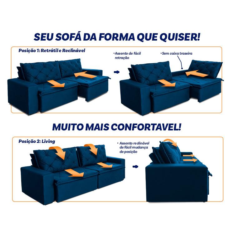 Dica Importantegostou Do Produto, Mas O Tamanho Não Se Encaixa Em Seu Ambiente, Ou Então Você Tem Preferência Por Outra Cor ?não Tem Problema, O Sofá Bangkok Está Disponível Em 5 Medidas E 7 Cores Diferentes Para Que Se Adapte A Qualquer Ambiente E Agrade A Todos Os Gostos :)medidas: 2,10m, 2,30m, 2,50m, 2,70m, 3,00mmateriais: Suede Velutcores: Azul, Bege, Cinza, Marrom, Preto, Tabaco E Vermelhocaso Você Tenha Interesse Em Visualizar Os Anúncios De Alguma Das Opções Acima, Basta Efetuar Uma Busca De Acordo Com As Opções Descritas.introdução Ao Produtoestá Com Dificuldade De Encontrar Um Sofá Que Encaixe Perfeitamente Na Sua Sala? Todas As Opções Que Encontrou Ocupa Um Grande Espaço Devido A Sua Caixa De Assento Retrátil? Temos A Solução!o Sofá Sem Caixa Retrátil Reclinável Bangkok Chegou Para Solucionar O Seu Problema, Com Um Design Elegante E Sem Perder A Flexibilidade De Um Retrátil Reclinável, O Sofá Bangkok Não Possui Uma Caixa Traseira, O Seu Assento Retrátil Utiliza O Encosto Reclinável Para Estender A Sua Dimensão Base, Dessa Forma Você Consegue Utiliza-lo De 3 (três) Maneiras Diferentes: Na Posição Living, Retrátil E Sofá Cama.ele Também Possui Duas Almofadas Destacáveis Que Se Adequa A Posição Que Desejar, Sem Mencionar Que É Muito Elegante E Confortável!e Não Para Por Aí A Sua Estrutura Interna É Composto De Madeira 100% De Reflorestamento Tornando-o Resistente, E Seu Assento Conta Com Espuma D33 E Molas Espirais, Transformando Seu Sofá Em Um Verdadeiro Aconchego Para Assistir Seu Filme Favorito, Tirar Aquela Soneca Que Você Aguarda Após Um Dia Agitado E Estressante, Ou Dar Aquela Maratonada Na Série Que Você Adiava Tanto Tempo Por Não Ter Encontrado O Sofá Certo, Até Agora!otimize O Seu Espaço E Não Perca Mais Tempo, Garanta Já O Seu Sofá Bangkok!características- Capacidade: 2,50m, ( 4 Pessoas Ou Mais).- Quantidade De Assentos: ( 2 Assentos).- Peso Real Suportado: 120kg Por Pessoa- Encosto Reclinável De 5 Posições- Almofadas Do Encosto Em Fibra Siliconada E Flocos De Espuma- Assento Retrátil Com Molas Espirais E Espuma D33- Braço Com Espuma D28- Estrutura Em Madeira De Reflorestamento, Eucalipto E Pinusdimensões (produto Montado)- Sofá Em 2 Módulos Para Facilitar Transporte- Altura: 1,05m- Largura : 2,50m- Profundidade: 1,20m- Profundidade Aberto: 1,75mmontagema Montagem Do Produto Pode Ser Feita Facilmente Seguindo O Manual De Instruções Que Acompanha A Embalagem Do Produto. Não É Necessário Técnico Especializado.garantia: 90 Diasinformações Relevantes- Não Nos Responsabilizamos Pela Instalação E Montagem- Antes De Efetuar A Compra, Verifique Cuidadosamente As Dimensões Do Produto, Certificando-se De Que O Mesmo Poderá Ser Transportado Por Portas, Corredores E Elevadores, Evitando Inconvenientes Durante A Entrega- Não Nos Responsabilizamos Pelo Transporte Por Escadas, Elevadores, Guincho Ou Içamento Do Produto. Todas As Despesas Associadas A Esses Serviços São De Responsabilidade Do Cliente.- Não Nos Responsabilizamos Por Entregas Em Zonas Rurais, Fazendas, Vias Não Pavimentadas Ou Sem Endereço Bem Identificado E Mapeado Por Equipamentos Gps, Mesmo Que A Zona Rural Esteja Inscrita Em Região Metropolitana. As Entregas Nessas Localidades Estão Sujeitas A Cobranças Adicionais Para Execução Com Operação Dedicada, Mediante Prévia Negociação Com O Cliente. Não Há Um Valor Fixo Determinado, Pois A Dificuldade Excessiva E Custos Podem Variar Caso A Caso- As Imagens São Meramente Ilustrativas, Podendo Ocorrer Variações De Tonalidades Nos Tecidos Devido Às Variações Nas Configurações De Monitores Ou Telas.- Os Objetos Decorativos Nas Imagens Não Acompanham O Produto.- Não Realizamos Trocas Por Outros Modelos Ou Medidas Diferentes. Certifique-se De Escolher O Produto Correto Conforme Suas Necessidades- Prestamos Assistência Técnica Exclusivamente Para Defeitos De Fabricação.
