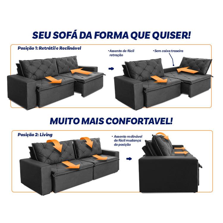 Dica Importantegostou Do Produto, Mas O Tamanho Não Se Encaixa Em Seu Ambiente, Ou Então Você Tem Preferência Por Outra Cor ?não Tem Problema, O Sofá Bangkok Está Disponível Em 5 Medidas E 7 Cores Diferentes Para Que Se Adapte A Qualquer Ambiente E Agrade A Todos Os Gostos :)medidas: 2,10m, 2,30m, 2,50m, 2,70m, 3,00mmateriais: Suede Velutcores: Azul, Bege, Cinza, Marrom, Preto, Tabaco E Vermelhocaso Você Tenha Interesse Em Visualizar Os Anúncios De Alguma Das Opções Acima, Basta Efetuar Uma Busca De Acordo Com As Opções Descritas.introdução Ao Produtoestá Com Dificuldade De Encontrar Um Sofá Que Encaixe Perfeitamente Na Sua Sala? Todas As Opções Que Encontrou Ocupa Um Grande Espaço Devido A Sua Caixa De Assento Retrátil? Temos A Solução!o Sofá Sem Caixa Retrátil Reclinável Bangkok Chegou Para Solucionar O Seu Problema, Com Um Design Elegante E Sem Perder A Flexibilidade De Um Retrátil Reclinável, O Sofá Bangkok Não Possui Uma Caixa Traseira, O Seu Assento Retrátil Utiliza O Encosto Reclinável Para Estender A Sua Dimensão Base, Dessa Forma Você Consegue Utiliza-lo De 3 (três) Maneiras Diferentes: Na Posição Living, Retrátil E Sofá Cama.ele Também Possui Duas Almofadas Destacáveis Que Se Adequa A Posição Que Desejar, Sem Mencionar Que É Muito Elegante E Confortável!e Não Para Por Aí A Sua Estrutura Interna É Composto De Madeira 100% De Reflorestamento Tornando-o Resistente, E Seu Assento Conta Com Espuma D33 E Molas Espirais, Transformando Seu Sofá Em Um Verdadeiro Aconchego Para Assistir Seu Filme Favorito, Tirar Aquela Soneca Que Você Aguarda Após Um Dia Agitado E Estressante, Ou Dar Aquela Maratonada Na Série Que Você Adiava Tanto Tempo Por Não Ter Encontrado O Sofá Certo, Até Agora!otimize O Seu Espaço E Não Perca Mais Tempo, Garanta Já O Seu Sofá Bangkok!características- Capacidade: 2,50m, ( 4 Pessoas Ou Mais).- Quantidade De Assentos: ( 2 Assentos).- Peso Real Suportado: 120kg Por Pessoa- Encosto Reclinável De 5 Posições- Almofadas Do Encosto Em Fibra Siliconada E Flocos De Espuma- Assento Retrátil Com Molas Espirais E Espuma D33- Braço Com Espuma D28- Estrutura Em Madeira De Reflorestamento, Eucalipto E Pinusdimensões (produto Montado)- Sofá Em 2 Módulos Para Facilitar Transporte- Altura: 1,05m- Largura : 2,50m- Profundidade: 1,20m- Profundidade Aberto: 1,75mmontagema Montagem Do Produto Pode Ser Feita Facilmente Seguindo O Manual De Instruções Que Acompanha A Embalagem Do Produto. Não É Necessário Técnico Especializado.garantia: 90 Diasinformações Relevantes- Não Nos Responsabilizamos Pela Instalação E Montagem- Antes De Efetuar A Compra, Verifique Cuidadosamente As Dimensões Do Produto, Certificando-se De Que O Mesmo Poderá Ser Transportado Por Portas, Corredores E Elevadores, Evitando Inconvenientes Durante A Entrega- Não Nos Responsabilizamos Pelo Transporte Por Escadas, Elevadores, Guincho Ou Içamento Do Produto. Todas As Despesas Associadas A Esses Serviços São De Responsabilidade Do Cliente.- Não Nos Responsabilizamos Por Entregas Em Zonas Rurais, Fazendas, Vias Não Pavimentadas Ou Sem Endereço Bem Identificado E Mapeado Por Equipamentos Gps, Mesmo Que A Zona Rural Esteja Inscrita Em Região Metropolitana. As Entregas Nessas Localidades Estão Sujeitas A Cobranças Adicionais Para Execução Com Operação Dedicada, Mediante Prévia Negociação Com O Cliente. Não Há Um Valor Fixo Determinado, Pois A Dificuldade Excessiva E Custos Podem Variar Caso A Caso- As Imagens São Meramente Ilustrativas, Podendo Ocorrer Variações De Tonalidades Nos Tecidos Devido Às Variações Nas Configurações De Monitores Ou Telas.- Os Objetos Decorativos Nas Imagens Não Acompanham O Produto.- Não Realizamos Trocas Por Outros Modelos Ou Medidas Diferentes. Certifique-se De Escolher O Produto Correto Conforme Suas Necessidades- Prestamos Assistência Técnica Exclusivamente Para Defeitos De Fabricação.