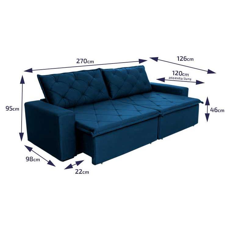 Dica Importantegostou Do Produto, Mas O Tamanho Não Se Encaixa Em Seu Ambiente, Ou Então Você Tem Preferência Por Outra Cor ?não Tem Problema, O Sofá Bangkok Está Disponível Em 5 Medidas E 7 Cores Diferentes Para Que Se Adapte A Qualquer Ambiente E Agrade A Todos Os Gostos :)medidas: 2,10m, 2,30m, 2,50m, 2,70m, 3,00mmateriais: Suede Velutcores: Azul, Bege, Cinza, Marrom, Preto, Tabaco E Vermelhocaso Você Tenha Interesse Em Visualizar Os Anúncios De Alguma Das Opções Acima, Basta Efetuar Uma Busca De Acordo Com As Opções Descritas.introdução Ao Produtoestá Com Dificuldade De Encontrar Um Sofá Que Encaixe Perfeitamente Na Sua Sala? Todas As Opções Que Encontrou Ocupa Um Grande Espaço Devido A Sua Caixa De Assento Retrátil? Temos A Solução!o Sofá Sem Caixa Retrátil Reclinável Bangkok Chegou Para Solucionar O Seu Problema, Com Um Design Elegante E Sem Perder A Flexibilidade De Um Retrátil Reclinável, O Sofá Bangkok Não Possui Uma Caixa Traseira, O Seu Assento Retrátil Utiliza O Encosto Reclinável Para Estender A Sua Dimensão Base, Dessa Forma Você Consegue Utiliza-lo De 3 (três) Maneiras Diferentes: Na Posição Living, Retrátil E Sofá Cama.ele Também Possui Duas Almofadas Destacáveis Que Se Adequa A Posição Que Desejar, Sem Mencionar Que É Muito Elegante E Confortável!e Não Para Por Aí A Sua Estrutura Interna É Composto De Madeira 100% De Reflorestamento Tornando-o Resistente, E Seu Assento Conta Com Espuma D33 E Molas Espirais, Transformando Seu Sofá Em Um Verdadeiro Aconchego Para Assistir Seu Filme Favorito, Tirar Aquela Soneca Que Você Aguarda Após Um Dia Agitado E Estressante, Ou Dar Aquela Maratonada Na Série Que Você Adiava Tanto Tempo Por Não Ter Encontrado O Sofá Certo, Até Agora!otimize O Seu Espaço E Não Perca Mais Tempo, Garanta Já O Seu Sofá Bangkok!características- Capacidade: 2,70m, ( 5 Pessoas).- Quantidade De Assentos: ( 2 Assentos).- Peso Real Suportado: 120kg Por Pessoa- Encosto Reclinável De 5 Posições- Almofadas Do Encosto Em Fibra Siliconada E Flocos De Espuma- Assento Retrátil Com Molas Espirais E Espuma D33- Braço Com Espuma D28- Estrutura Em Madeira De Reflorestamento, Eucalipto E Pinusdimensões (produto Montado)- Sofá Em 2 Módulos Para Facilitar Transporte- Altura: 1,05m- Largura : 2,70m- Profundidade: 1,20m- Profundidade Aberto: 1,75mmontagema Montagem Do Produto Pode Ser Feita Facilmente Seguindo O Manual De Instruções Que Acompanha A Embalagem Do Produto. Não É Necessário Técnico Especializado.garantia: 90 Diasinformações Relevantes- Não Nos Responsabilizamos Pela Instalação E Montagem- Antes De Efetuar A Compra, Verifique Cuidadosamente As Dimensões Do Produto, Certificando-se De Que O Mesmo Poderá Ser Transportado Por Portas, Corredores E Elevadores, Evitando Inconvenientes Durante A Entrega- Não Nos Responsabilizamos Pelo Transporte Por Escadas, Elevadores, Guincho Ou Içamento Do Produto. Todas As Despesas Associadas A Esses Serviços São De Responsabilidade Do Cliente.- Não Nos Responsabilizamos Por Entregas Em Zonas Rurais, Fazendas, Vias Não Pavimentadas Ou Sem Endereço Bem Identificado E Mapeado Por Equipamentos Gps, Mesmo Que A Zona Rural Esteja Inscrita Em Região Metropolitana. As Entregas Nessas Localidades Estão Sujeitas A Cobranças Adicionais Para Execução Com Operação Dedicada, Mediante Prévia Negociação Com O Cliente. Não Há Um Valor Fixo Determinado, Pois A Dificuldade Excessiva E Custos Podem Variar Caso A Caso- As Imagens São Meramente Ilustrativas, Podendo Ocorrer Variações De Tonalidades Nos Tecidos Devido Às Variações Nas Configurações De Monitores Ou Telas.- Os Objetos Decorativos Nas Imagens Não Acompanham O Produto.- Não Realizamos Trocas Por Outros Modelos Ou Medidas Diferentes. Certifique-se De Escolher O Produto Correto Conforme Suas Necessidades- Prestamos Assistência Técnica Exclusivamente Para Defeitos De Fabricação.