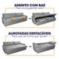 Sofá Cama Baú Ravello Sem Caixa 2,76m Linho Cinza 3 Lugares