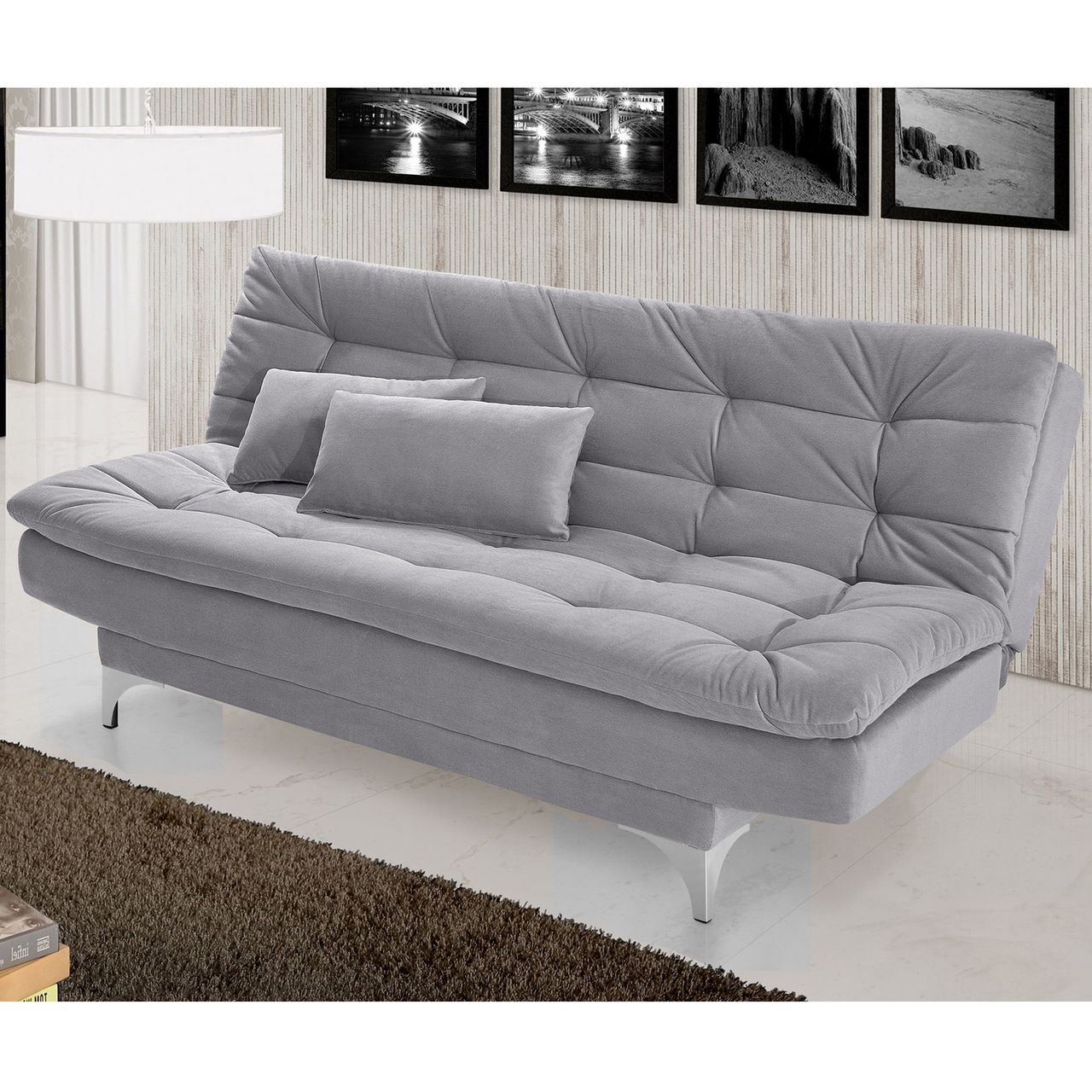 Sofá Cama Pratic Império Estofados Cinza