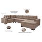 conjunto de canto com almofadas soltas em 100% fibra de silicone, com costuras pespontadas, assentos com espumas de alto conforto com a densidade d26, com percintas elástica e molas para proporcionar maior durabilidade e conforto, estrutura com madeiras tratadas.