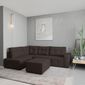 Sofá De Canto Modulado Com 1 Chaise, 1 Peça De 1 Lugar, 1 Peça De Dois Lugares E 1 Puff. Estrutura Em Madeira De Eucalipto E Pinnus, Composto Com Percinta Elástica, Manta Siliconada E Espuma D23. Revestido Com Tecido Califórnia Café . Almofadas Soltas Com Enchimento Em Fibra E Flocos. Pés De Plástico Na Cor Marrom.
