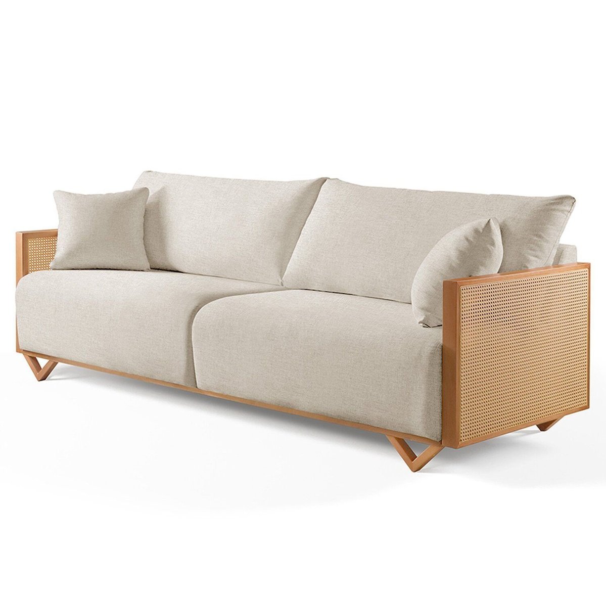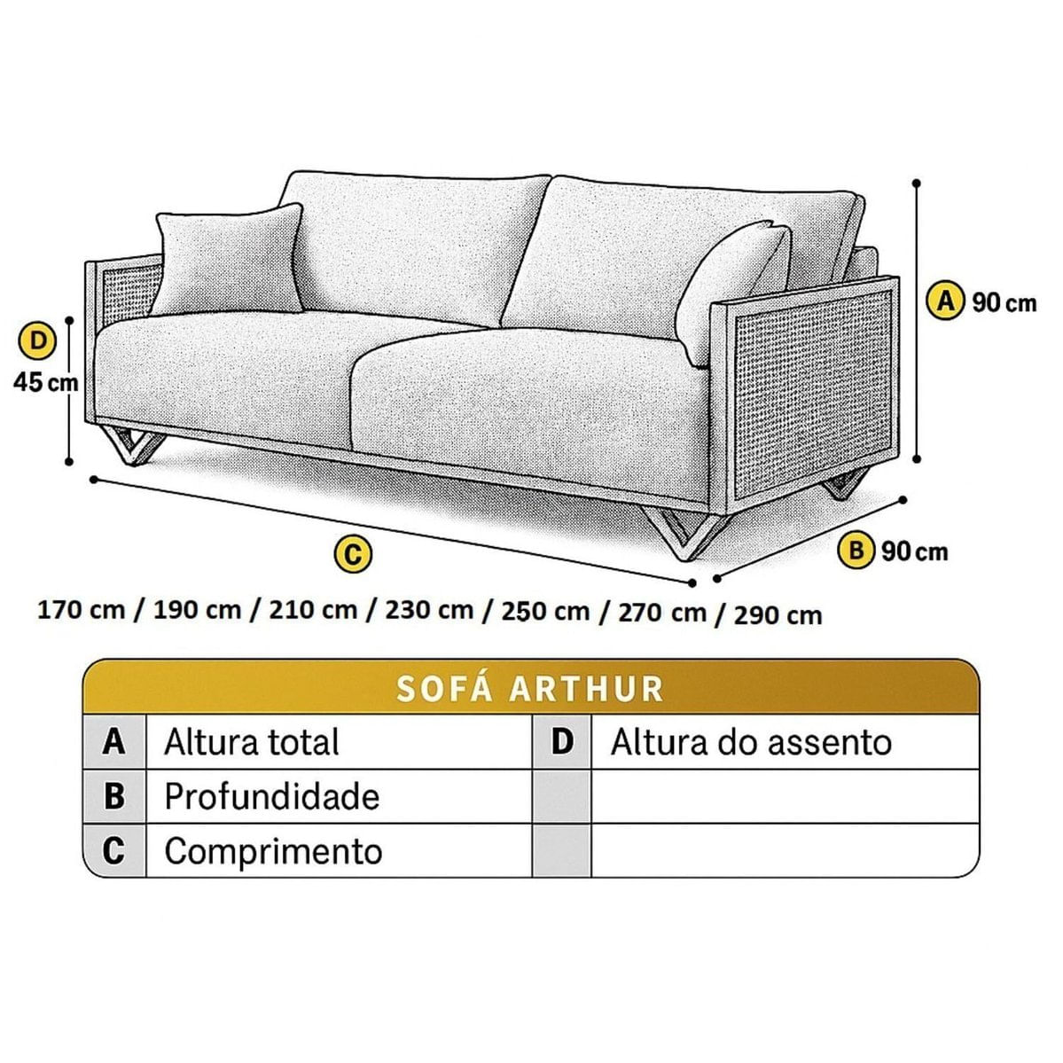 O Sofá Arthur É Um Modelo Sofisticado Que Combina A Elegância Da Estrutura Em Madeira Com A Delicadeza Artesanal Da Palhinha Nas Laterais. Ele Traz Um Design Clássico-contemporâneo Com Leveza Visual, Adicionando Personalidade E Requinte Ao Seu Ambiente.