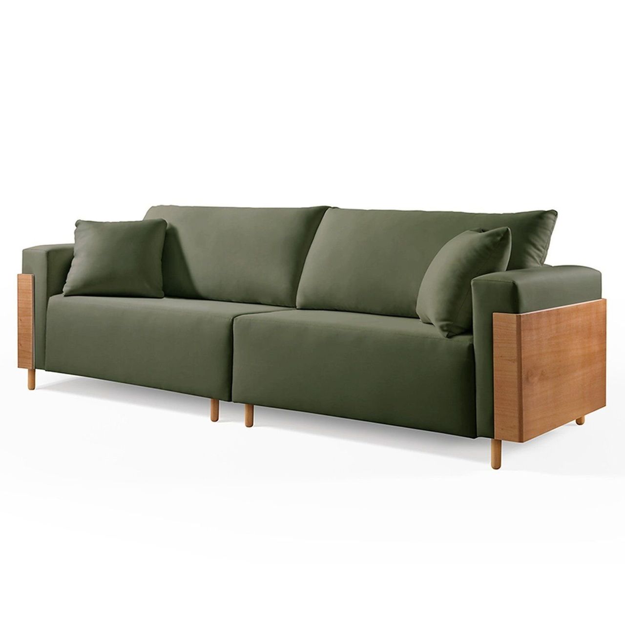 Sofá Fixo Heitor 4 Lugares Luxo Pé De Madeira 2,60m Castellar Móbile Veludo Verde.