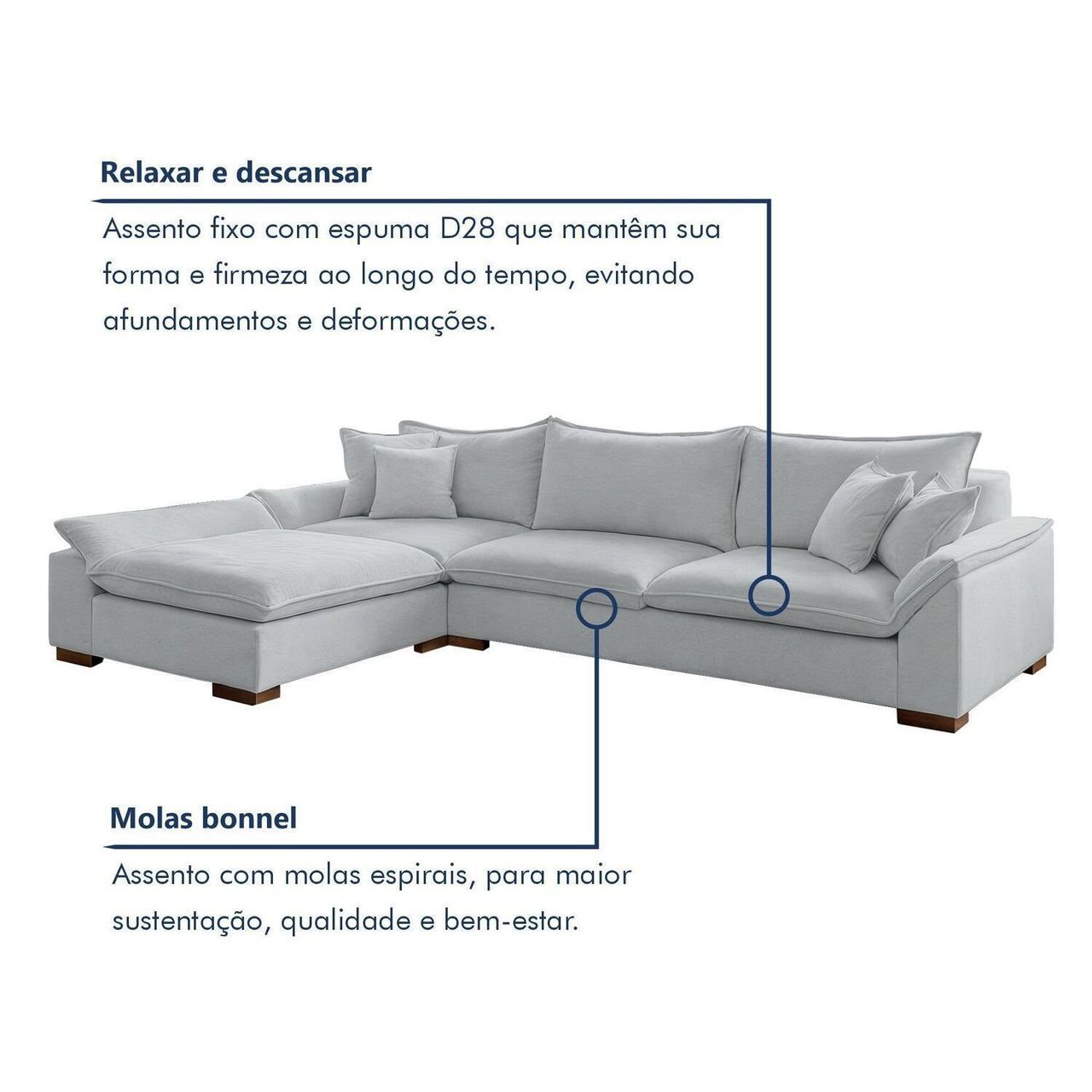 Transforme sua sala em um cantinho de conforto e estilo com o nosso Sofá Modulado Dominique da Linha Prime! Sinta o toque super macio do tecido e aproveite o conforto do assento Pillow Top de 18 cm, com Molas Bonnel e Espuma D-28 , que garantem suporte e durabilidade que você vai sentir no dia a dia. O design modular é incrível: você monta do jeito que quiser, seja para maratonar séries, relaxar ou receber a galera com conforto total. Os elegantes pés em Madeira Maciça , não só agregam charme e estabilidade, mas também refletem nosso compromisso com a qualidade e o meio ambiente. Sem falar na Chaise super espaçosa, perfeita para esticar as pernas e relaxar de verdade. Adquira já o seu e transforme sua sala.
