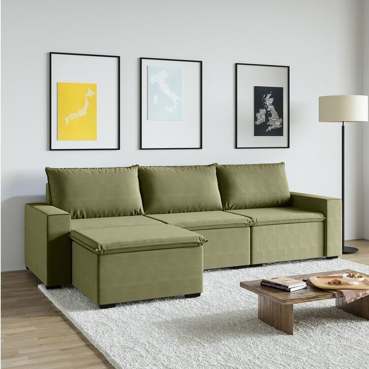 Sofá Modular 3 Lugares Com Puff Zen Cabecasa Madeiraoriginals Verde Salvia.