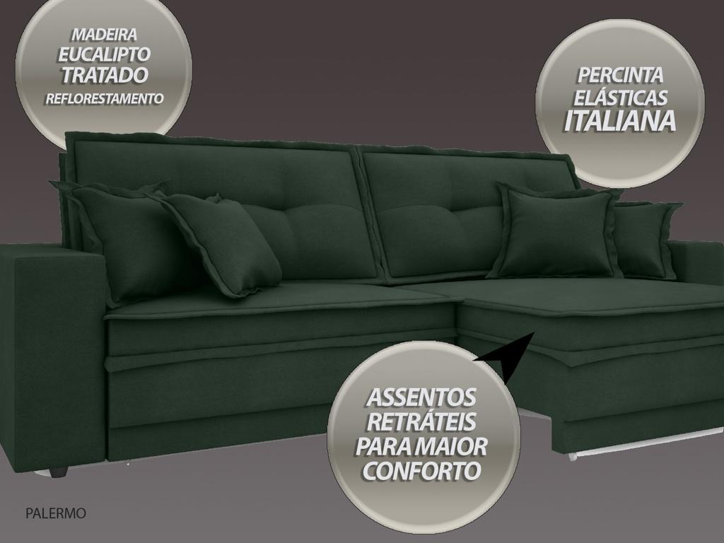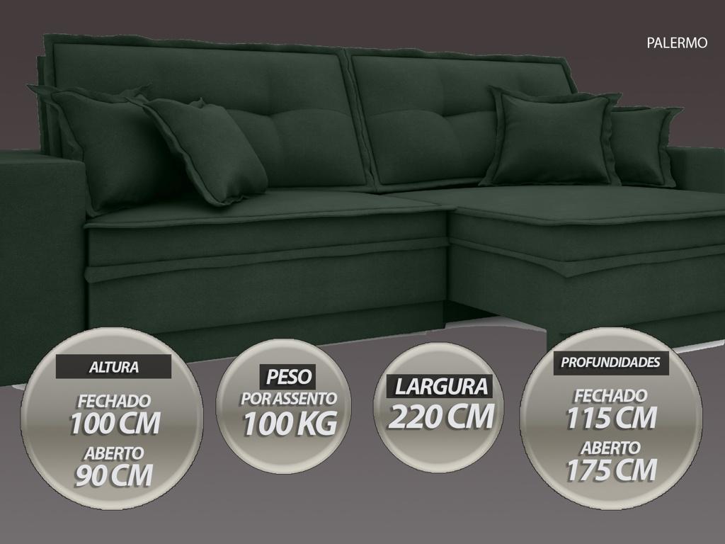 Exclusividade com requinte NETSOFAS.Se você busca por um SOFÁ para transformar sua sala de estar, vai se apaixonar pelo SOFÁ PALERMO. Disponível em várias medias, ele é aconchegante e possui um visual que vai elevar a decoração do espaço para outro nível. A base em madeira e as espumas de diferentes densidades são a cereja do bolo. Prontinho, você encontrou o item que faltava para sua sala! Agora é só clicar em comprar! Vamos, me leva!Informações técnicas:Material da estrutura:Madeira Maciça de Eucalipto 100% de reflorestamento,produto ecologicamente correto.Enchimento do Assento: Espuma D-28, Manta acrílica Siliconada, PercintaElástica e Mola Bonnel.Enchimento do Encosto: Flocos de Espuma, Fibra de Poliéster Siliconada e PercintaElástica.Fixação da Estrutura:Grampos galvanizados antiferrugem.Revestimento / Tecido:Velosuede.Chaise:Não Possui.Acompanham 04 lindas almofadas. Agregando mais Charme e praticidade aoSOFÁ PALERMO.Praticidade: Modelo bipartido, facilitando o transporte porcorredores estreitos e escadas.Medidas:Altura aproximada: 100cm (fechado) e 90cm (aberto).Largura aproximada:220cm.Profundidade aproximada:115cm (fechado) e 175cm (aberto). Peso aproximado:86kg.Necessita Montagem:Não.Necessita Montador Especializado:Não. Pode ser montado por uma pessoa sozinha.Capacidade em KG por Lugar:Aproximadamente100kg.*distribuídos igualmente sobre a área do assento.Garantia:3 meses contra defeito de fabricação.*a contar da data do recebimento da mercadoria.Limpeza:Aspirar o Produto para Eliminar a Poeira,utilizarum pano levemente umedecido com águae sabão neutro, seguido de pano seco.Não limpar com escovas ou produtos abrasivos.Recomendações de Manutenção:Usar em local seco, não molhar. Evitar exposição ao sol, para que o produto não sofra alterações natonalidade.ATENÇÃO!A tonalidade do produto pode variar entre a imagem de exibição e o item físico.Imagens meramente ilustrativas.Não nos responsabilizamos pela montagem/instalação dos produtos.-Os objetos que ambientam as fotos não acompanham o produto.- Verifique as dimensões do produto e certifique-se que o percurso que ele fará até o local de uso permite sua passagem. Nós não nos responsabilizamos por transporte de produtos, caso não caibam em elevadores, acima de três lances de escada e não cabendo na passagem das escadas, por içamentos ou desmontagens de produtos. Quaisquer despesas deste tipo ficam a cargo do cliente.-Reservamo-nos o direito depossíveis erros de digitação.Anúnciosujeito a alteração semavisoprévio.-Antes da entrega, nossos produtos passam por um rigoroso controle de qualidade para que cheguem até o cliente em perfeitas condições, entretanto, em casos de desacordo com o proposto, o comprador deverá contatar o nosso SACe/ou a loja aonde a compra foi efetuada.-O prazo para solucionar os problemas identificados é de até 30 dias úteis, contados a partir da data do posicionamento do SAC com o comprador.