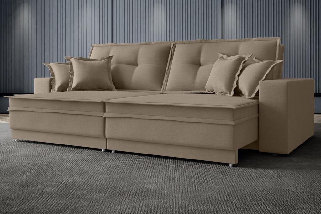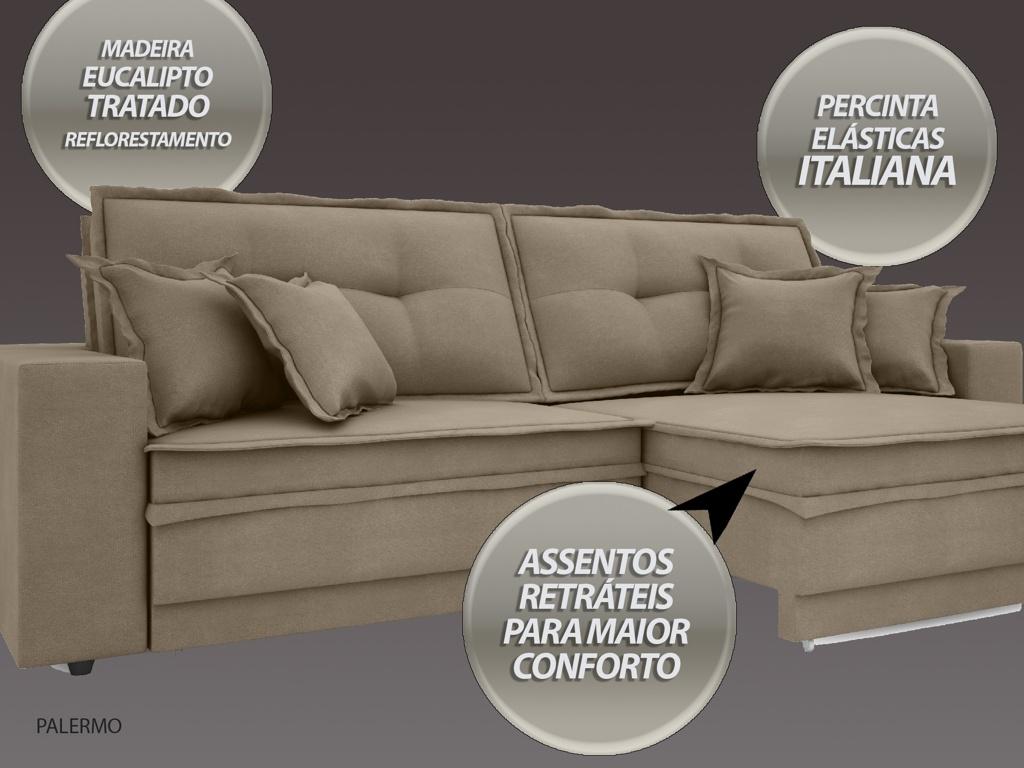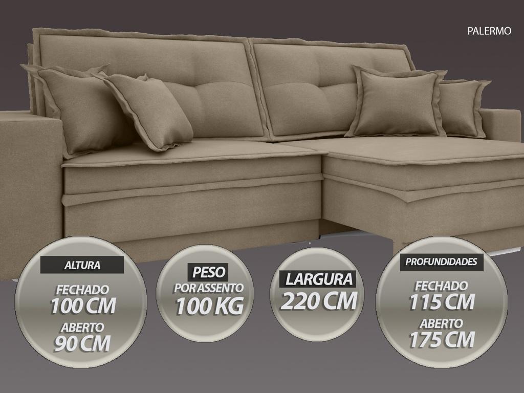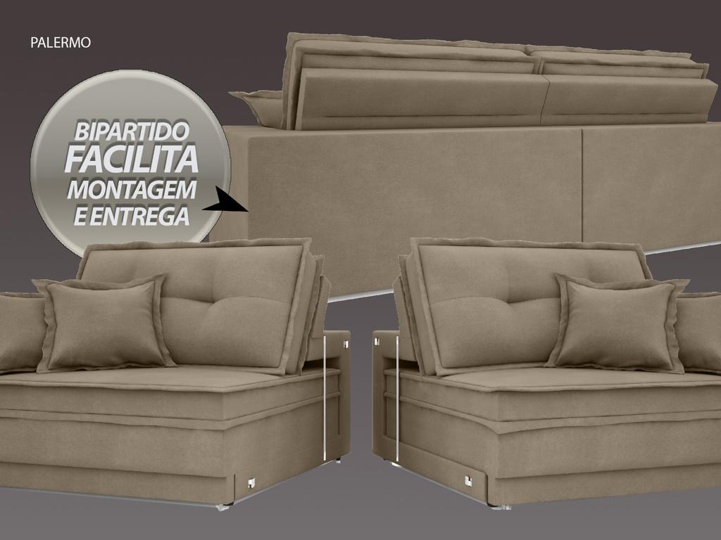 Exclusividade com requinte NETSOFAS.Se você busca por um SOFÁ para transformar sua sala de estar, vai se apaixonar pelo SOFÁ PALERMO. Disponível em várias medias, ele é aconchegante e possui um visual que vai elevar a decoração do espaço para outro nível. A base em madeira e as espumas de diferentes densidades são a cereja do bolo. Prontinho, você encontrou o item que faltava para sua sala! Agora é só clicar em comprar! Vamos, me leva!Informações técnicas:Material da estrutura:Madeira Maciça de Eucalipto 100% de reflorestamento,produto ecologicamente correto.Enchimento do Assento: Espuma D-28, Manta acrílica Siliconada, PercintaElástica e Mola Bonnel.Enchimento do Encosto: Flocos de Espuma, Fibra de Poliéster Siliconada e PercintaElástica.Fixação da Estrutura:Grampos galvanizados antiferrugem.Revestimento / Tecido:Velosuede.Chaise:Não Possui.Acompanham 04 lindas almofadas. Agregando mais Charme e praticidade aoSOFÁ PALERMO.Praticidade: Modelo bipartido, facilitando o transporte porcorredores estreitos e escadas.Medidas:Altura aproximada: 100cm (fechado) e 90cm (aberto).Largura aproximada:220cm.Profundidade aproximada:115cm (fechado) e 175cm (aberto). Peso aproximado:86kg.Necessita Montagem:Não.Necessita Montador Especializado:Não. Pode ser montado por uma pessoa sozinha.Capacidade em KG por Lugar:Aproximadamente100kg.*distribuídos igualmente sobre a área do assento.Garantia:3 meses contra defeito de fabricação.*a contar da data do recebimento da mercadoria.Limpeza:Aspirar o Produto para Eliminar a Poeira,utilizarum pano levemente umedecido com águae sabão neutro, seguido de pano seco.Não limpar com escovas ou produtos abrasivos.Recomendações de Manutenção:Usar em local seco, não molhar. Evitar exposição ao sol, para que o produto não sofra alterações natonalidade.ATENÇÃO!A tonalidade do produto pode variar entre a imagem de exibição e o item físico.Imagens meramente ilustrativas.Não nos responsabilizamos pela montagem/instalação dos produtos.-Os objetos que ambientam as fotos não acompanham o produto.- Verifique as dimensões do produto e certifique-se que o percurso que ele fará até o local de uso permite sua passagem. Nós não nos responsabilizamos por transporte de produtos, caso não caibam em elevadores, acima de três lances de escada e não cabendo na passagem das escadas, por içamentos ou desmontagens de produtos. Quaisquer despesas deste tipo ficam a cargo do cliente.-Reservamo-nos o direito depossíveis erros de digitação.Anúnciosujeito a alteração semavisoprévio.-Antes da entrega, nossos produtos passam por um rigoroso controle de qualidade para que cheguem até o cliente em perfeitas condições, entretanto, em casos de desacordo com o proposto, o comprador deverá contatar o nosso SACe/ou a loja aonde a compra foi efetuada.-O prazo para solucionar os problemas identificados é de até 30 dias úteis, contados a partir da data do posicionamento do SAC com o comprador.