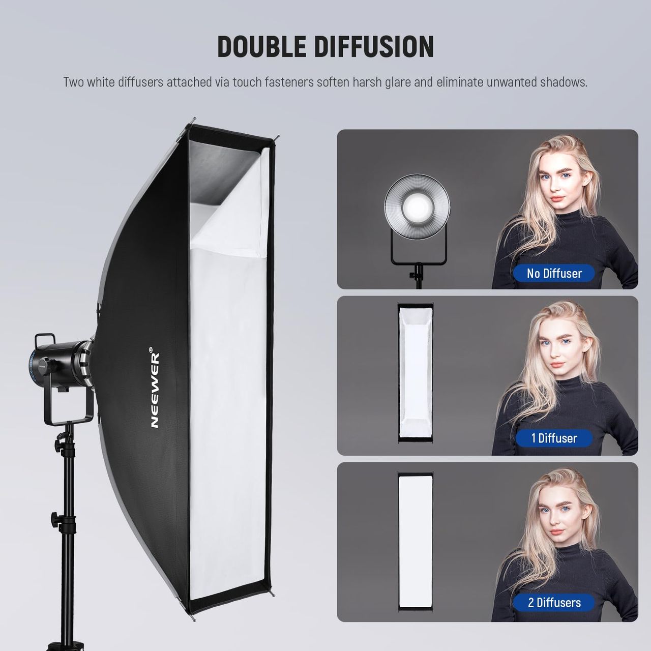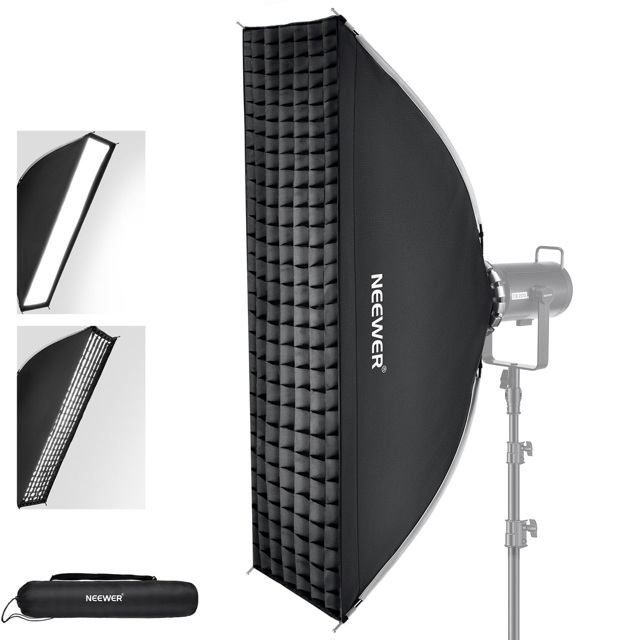 Compatível Com Vários Equipamentos De Iluminação De Estúdio, Flashes Estroboscópicos, Holofotes, Luzes Monolíticas E Luzes De Vídeo Led Cob De Saída Contínua, Incluindo Neewer Vision 4 Q4 Cb300b Cb200b Fs150b Cb100c Ms150b Ms60b Cb60 Rgb S101-300w/400w Pro, Compatível Com Aputure 300c 200x 60d 60x S, Compatível Com Godox Sl60w Smallrig Rc 120d Rc 120b, Etc. -【dobrável E Amplamente Aplicável】uma Vez Dobrada (32,3" X 7,5" X 7,5"/ 82 X 19 X 19 Cm), Esta Softbox Dobrável Cabe Facilmente Em Sua Bolsa De Transporte Com Cordão. Ideal Para Casamentos, Festas, Retratos, Fotografias De Produtos, Sessões De Moda E Muito Mais. Quando Com Um Suporte De Parede Ou Teto (não Incluído), Ele Cria A Ilusão De Um Espaço Maior, Como Se A Luz Estivesse Vindo De Janelas Altas Acima Do Objeto