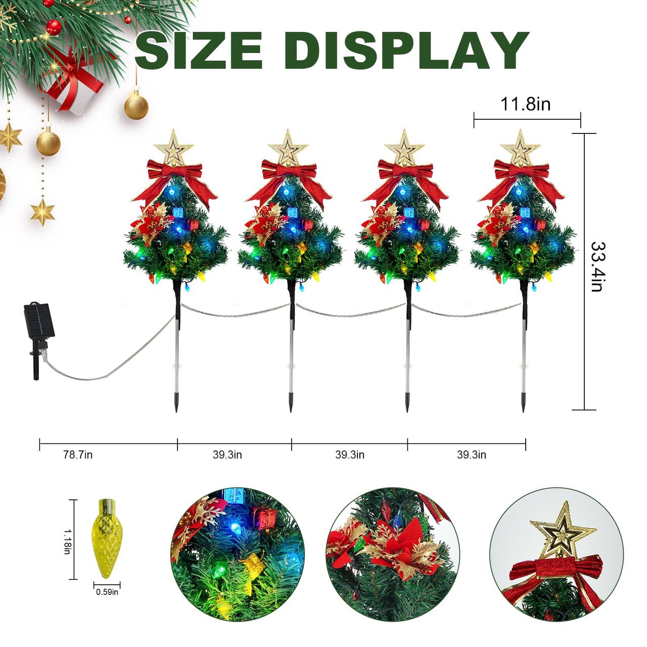 - 【design Exclusivo De Natal】a Luz Solar Para Caminho É Feita De Plástico Durável, À Prova D'água, Com Tinta Antiferrugem, Decorada Com Luzes De Morango, Estrelas Douradas, Caixas De Presente, Flores E Laços Grandes Para Adicionar Mais Alegria De Natal Ao Seu Jardim