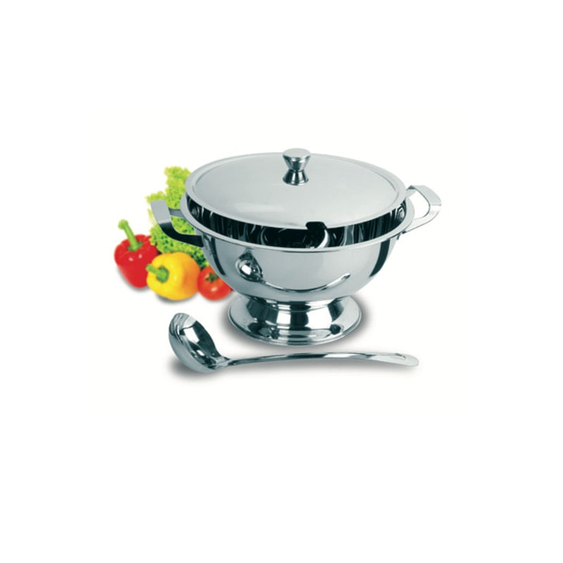 Sopeira de Inox com Concha 21cm..Fabricante: rio de ouro.cores: prata.composição: aço inox..Tamanhos:.- Sopeira, 12x21cm.- Concha, 18cm.- 1,5 Litros