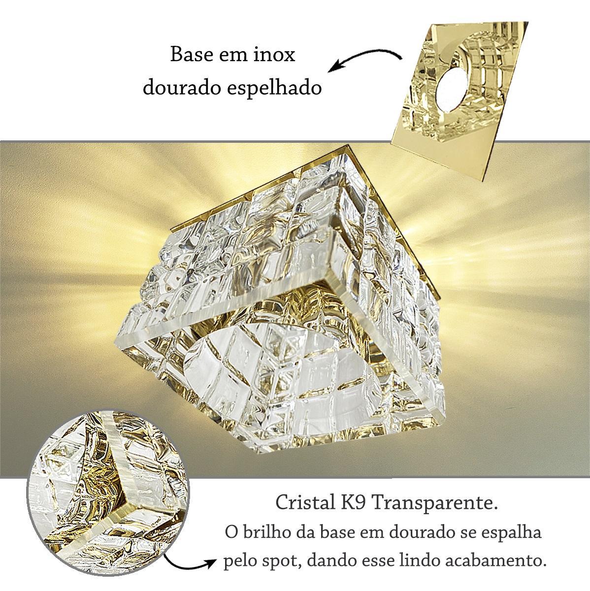 A Base Dourada Espelhada Do Spot Possui Um Acabamento Impecável, Complementando Perfeitamente O Brilho Do Cristal E Adicionando Um Elemento De Luxo Ao Design. Além Disso, O Material Utilizado Na Fabricação É Cristal Transparente E Inox, Garantindo Durabilidade E Resistência.