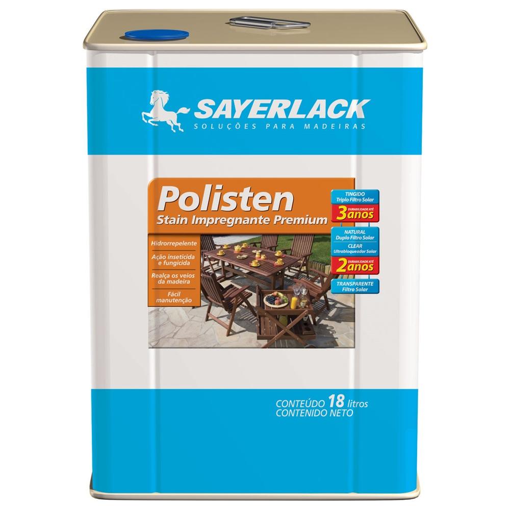 O Verniz Acetinado Polisten Transparente 18 Litros da Sayerlack é indicado para portas, portões, janelas, esquadrias, cercas, lambris, casas pré-fabricadas de madeira, móveis de madeira para jardins e madeiras decorativas em geral. Fácil de aplicar, tem ação fungicida e inseticida, realça os veios da madeira, fácil manutenção, com filtro solar. Aplicação de seis a oito demãos, completa 24 horas. Área interna e externa. Caso queira dar brilho ao acabamento recomendamos aplicar uma demão do Verniz Marítimo Poliulack.Há 50 anos a Renner Sayerlack está no mercado de tintas e vernizes para madeira na América Latina. O aprendizado deste período resultou em inúmeras inovações e em uma marca reconhecida, valorizada e presente em mais de 90 países.