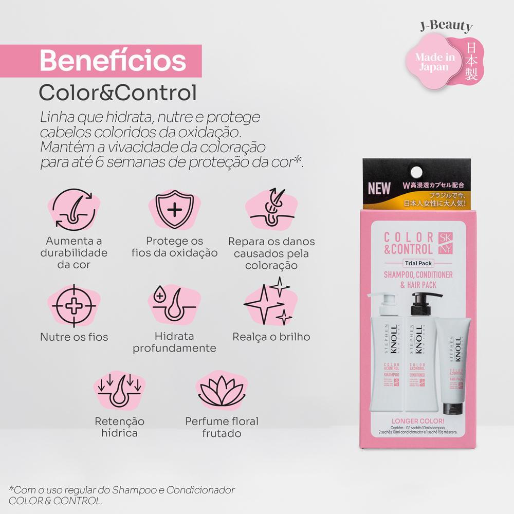 O Trial Pack É Um Kit Que Contém Sachês Do Shampoo, Condicionador E Máscara Da Linha Color & Control Stephen Knoll, Ideal Para Você Conhecer Os Produtos E Fazer Um Tratamento Completo Para O Seu Cabelo, Ou Levar Na Bolsa De Academia Ou Viagem.