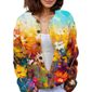 Título: Cardigã Feminino De Outono Com Estampa Floral E Frente Aberta