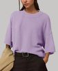 - Características: Blusas Femininas De Verão, Mangas 3/4, Gola Redonda, Estilo Cropped, Punhos Grandes, Malha, Cor Sólida Básica, Ajuste Solto, Estilo Casual. Camisetas Femininas Fofas Confortáveis.