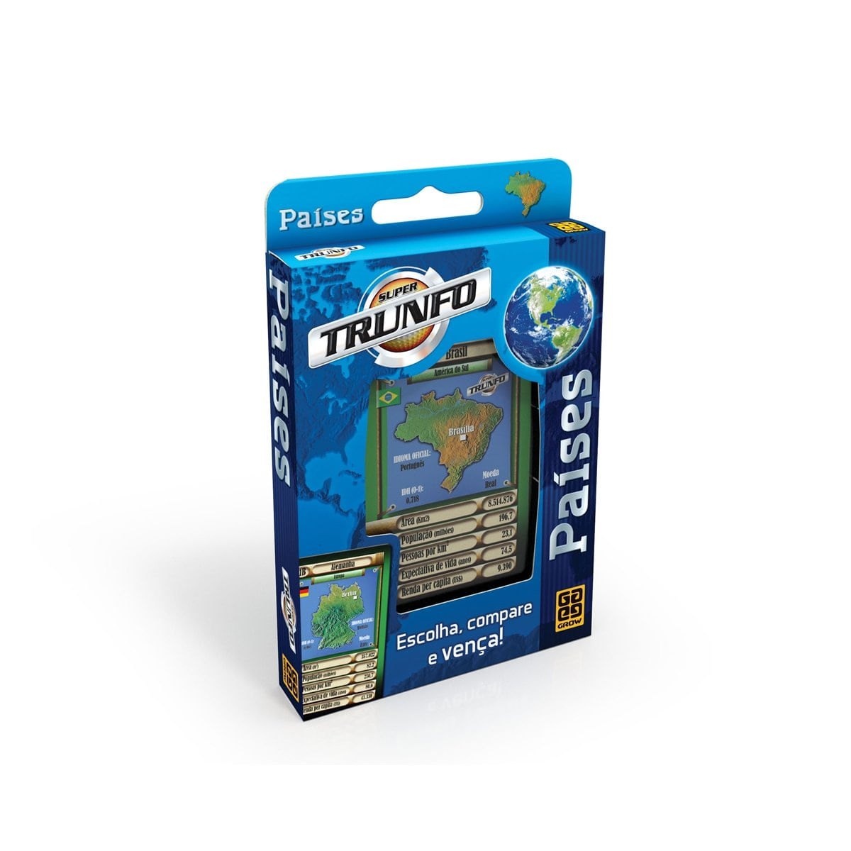 O jogo Super Trunfo Países, vem com ilustrações dos mapas, das bandeiras e informações de cada país! Então, um dos jogadores inicia escolhendo um item, e quem tiver a carta melhor leva! Vence aquele que acumular mais cartas.Em qual item o país da sua carta é melhor? Será a população? A maior área? Ou você tem o Super Trunfo? Escolha, compare e vença essa disputa!Indicado a partir de 7 anos, para 2 a 8 jogadores.Contém: 32 cartas, 1 regra, 1 caixa plástica.Tamanho aproximado da embalagem (LxAxP): 10 x15x3cmNão indicado para menores de 3 anos.Possui certificação do Inmetro.