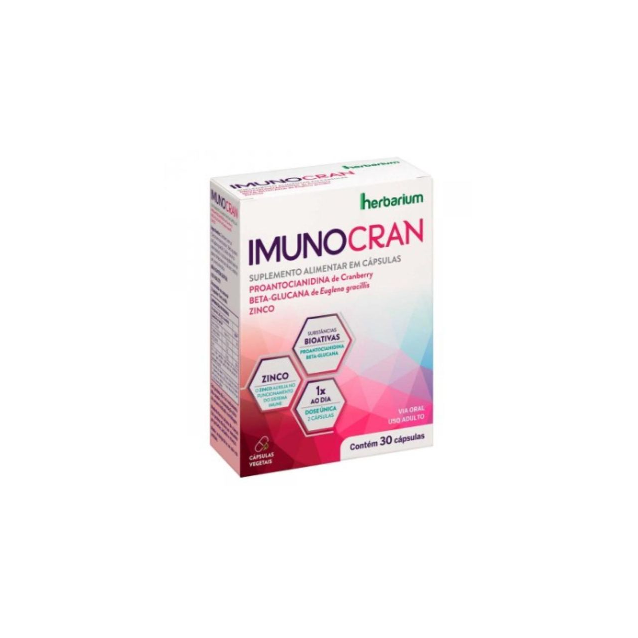 Imunocran É Um Suplemento Alimentar Em Cápsulas De Proantocianidinas De Cranberry, Beta-glucana De Euglena Gracillis E Zinco.