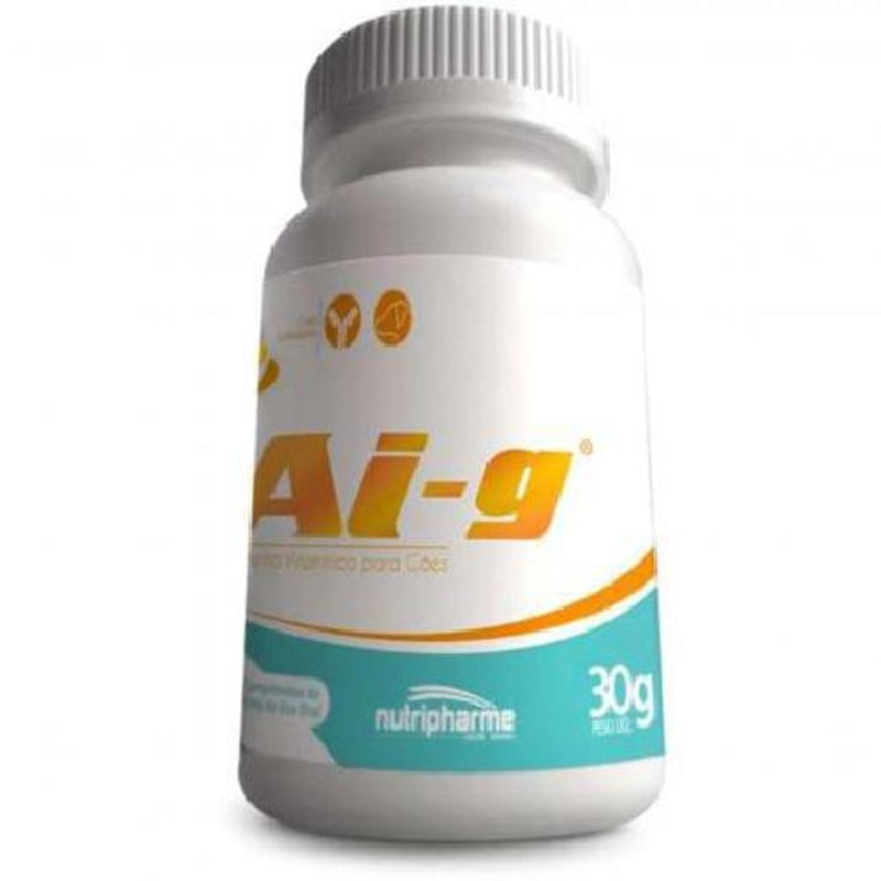 Indicação do produto:AiG é um Suplemento Mineral Vitamínico para cães de uso oral. Aig é produzido com ovos desidratados na forma em pó, selecionados a partir de galinhas White Leghorn que tiveram contato com antígenos de cães. Aig é indicado como suporte para cães em déficit nutricional. Enriquecido com vitaminas e minerais..Modo de usar:.Produto de uso oral, deve ser administrado 1 comprimido para cada 10 Kg de peso corporal de umaa quatro vezes ao dia, a critério do médico veterinário...Licenciado No Ministério Da Agricultura Sob Nº MT-80102..Orientações:.Conservar em local seco, fresco, ao abrigo da luz solar e fora do alcance de crianças e animais..Armazenar entre 15°C a 30°C..Não guardar o produto junto de alimentos, bebidas, produtos de higiene ou domésticos..Não reutilizar a embalagem vazia...Consulte sempre o médico Veterinário de sua confiança para o uso apropriado deste produto..Leia a bula ou informações descritas na embalagem...Foto Meramente ilustrativa...Descrição sob responsabilidade do fabricante, retirada diretamente do site do fabricante ou do próprio rótulo do produto...Níveis de garantia por comprimido:.Acido Folico (Mín.)0,16 mg.Acido Nicotinico (Mín.)2.,3 mg.Acido Pantotenico (Mín.)2,05 mg.Selênio (Mín.)25,0 mcg.Vitamina A (Mín.)1.000,0 Ui.Vitamina B1 (Mín.)0,210 mg.Vitamina B12 (Mín.)45,0 mcg.Vitamina B2 (Mín.)0,51 mg.Vitamina B6 (Mín.)0,21 mg.Vitamina C (Mín.)7,63 mg.Vitamina D3 (Mín.)200,0 Ui.Vitamina E (Mín.)10,0 Ui.Zinco Quelatado (Mín.)3,6 mg