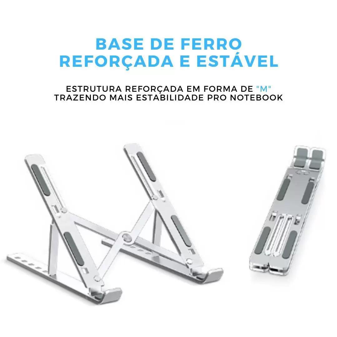 Base Feita Em Metal Resistente E Equipado Com Tiras Antiderrapante, Além De Possui No Centro Armação No Formato M Cruzado Trazendo Ainda Mais Reforço Para Aguentar Basicamente Todos Os Tipos De Notebooks Atuais.