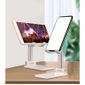 Suporte Celular E Tablet Ajustável Articulado De Mesa Branco..Item: Suporte para Celulares e Tablets.Material: Liga de Alumínio + Plástico ABS + Silicone.Tamanho: 15,6 x 11 cm.Tamanho Dobrado: 135 x 85 mm.Cores: branco..Confira mais benefícios:.Ideal para leituras, assistir vídeos, filmes e séries com conforto e sofisticação,.Projetado para ser ergonomicamente adequado a sua necessidade, evitando danos na sua postura,.Feito para qualquer modelo de smartphone ou tablet de até 11 polegadas,.Dobrável e portátil sem necessidade de ferramentas,.Altura ajustável e retrátil sem qualquer dificuldade (de 8,5 a 15,6 cm),.A base é mais pesada, impedindo que o suporte vire,.A haste para pôr o aparelho é feita com silicone antiderrapante,.Após dobrado esse suporte cabe no seu bolso, leve-o para qualquer lugar,.Feito com liga de alumínio e plástico ABS de alta qualidade, resistência e durabilidade, Ângulo de rotação:180 marca:Basike Wi