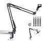-【flexível E Ajustável】o Suporte Para Microfone De Mesa Oferece Flexibilidade Impressionante Com Uma Base Que Pode Girar 360° Horizontalmente E Ajustar 135° Verticalmente. A Junta Do Braço Da Lança De Baixo Perfil Do Tampo Da Mesa Permite Subir E Descer 180°, Enquanto O Clipe Do Microfone Suporta Uma Rotação De 270° Para Um Posicionamento Preciso. Todos São Protegidos Com Botões De Aperto Manual, Garantindo Estabilidade Durante O Uso. Como Criador De Conteúdo Essencial, O Influenciador Deve Ter Acessórios De Streaming E Gravação