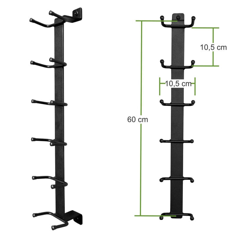 01 Suporte para exposição de halteres fixo em parede, com capacidade para 6 halteres...Especificações técnicas:.- Altura: 60 cm,.- Largura: 10 cm,.- Material: Aço Carbono,.- Pintura: Eletrostática...Conteúdo:.01 Suporte com capacidade para 6 halteres..Acompanham parafusos e buchas para fixação em concreto..Ficha técnica.- Fonte do produto: Iron Health Equipamentos Esportivos.- Comprimento: 60 cm.- Largura: 10,5 cm.- Material: Ferro