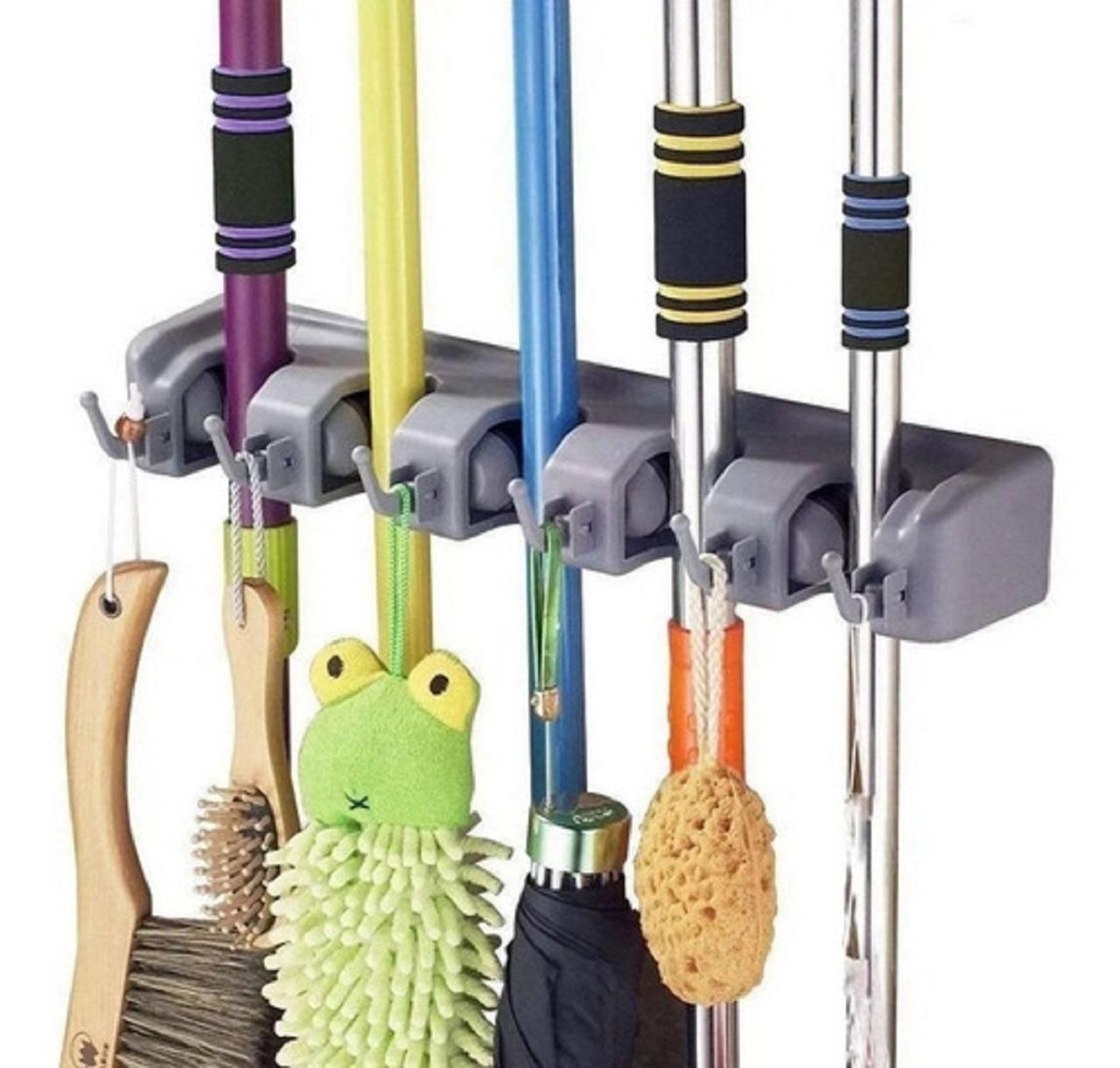 1 Suporte Organização Para Vassouras Com 5 Lugares E 6 Ganchos
