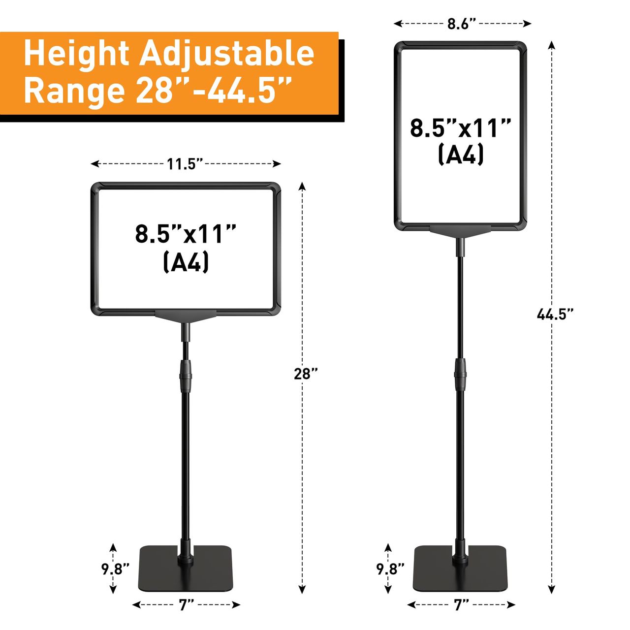 - Suporte De Placa Ajustável – Este Suporte De Sinalização Oferece Uma Faixa De Altura De 78 A 99 Cm, Com Um Poste De Metal De Duas Peças E Um Fixador Rotativo De Plástico Para Facilitar Os Ajustes De Altura. Seu Design De Base Espessa E Resistente Garante Forte Estabilidade E Evita Tombamento, Mantendo A Estabilidade Nas Posições Vertical E Horizontal.
