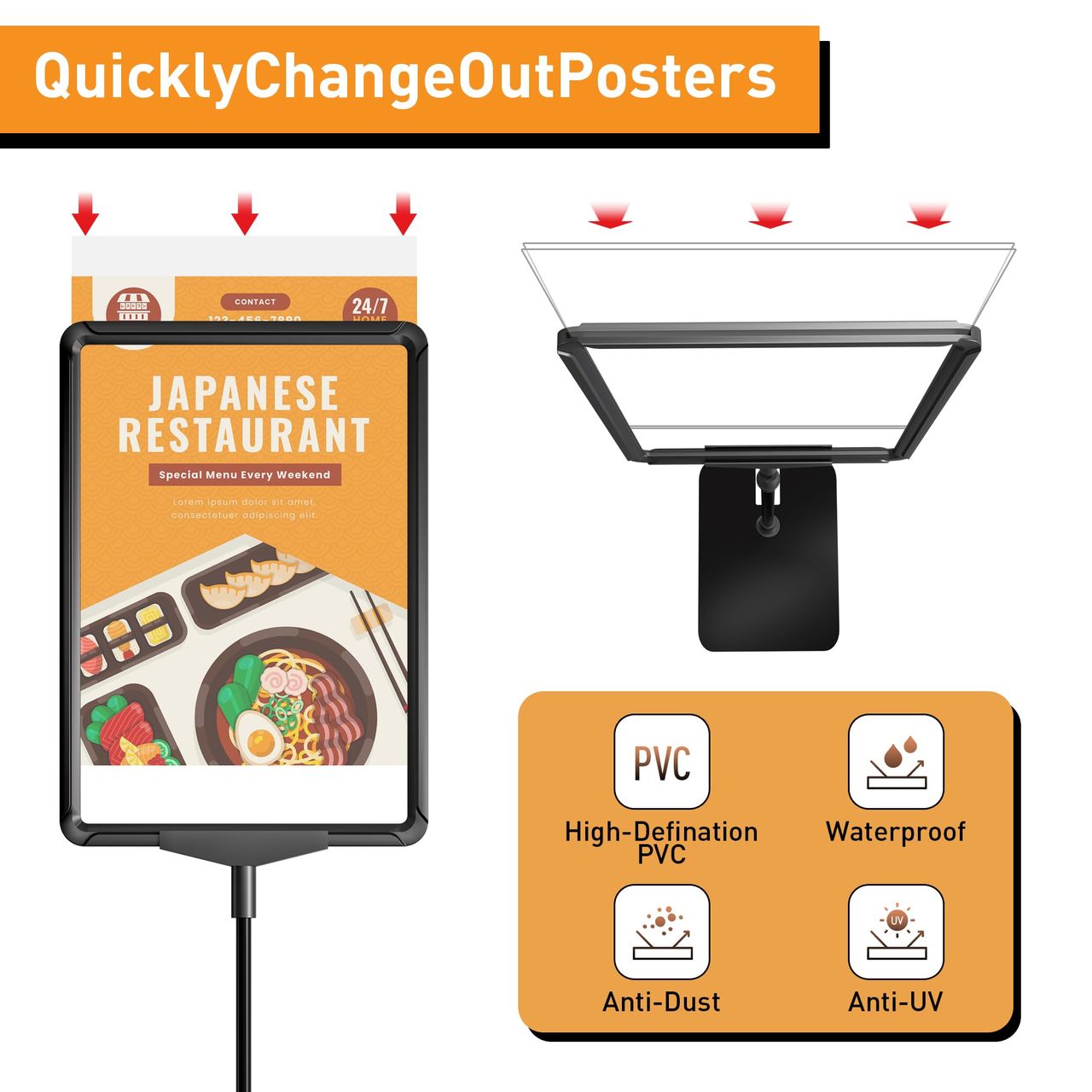 Construção Durável: Feito Com Uma Combinação De Uma Moldura De Suporte De Pôster De Plástico, Poste De Metal De 2 Peças, Fixador Rotativo De Plástico E Placa Inferior De Metal, Garantindo Longevidade E Estabilidade.