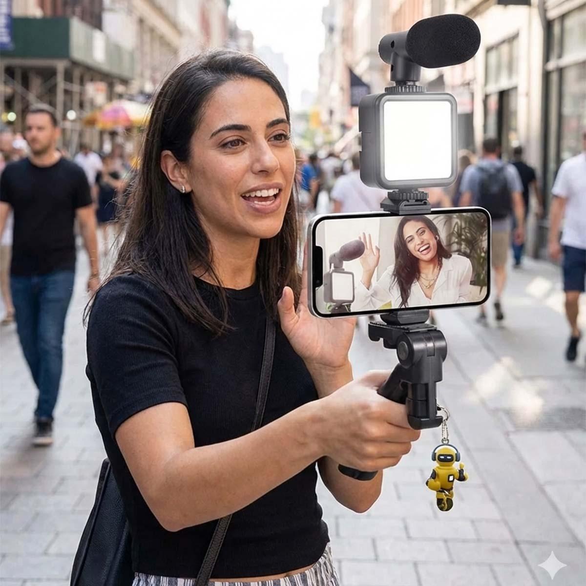 Múltiplos Cenários de Uso: O kit de vídeo vlog pode ser usado para a maioria das cenas e liberar suas mãos, é adequado para gravação de vídeo de viagens ao ar livre, entrevistas, gravação de conferência, gravação de música e outras ocasiões.