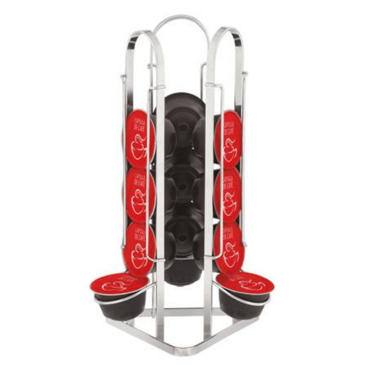 Suporte triplo para cápsulas de café NESPRESSO fabricado em aço cromado. Um item funcional e prático, ideal para complementar o seu cantinho do café. Para manter seu espaço sempre limpo e em ordem são necessários objetos que auxiliam em seu dia a dia. Observação: os demais itens na imagem são ilustrativos e não acompanham o produto. Dimensões: 18 Comprimento x 18 Largura x 29 Altura