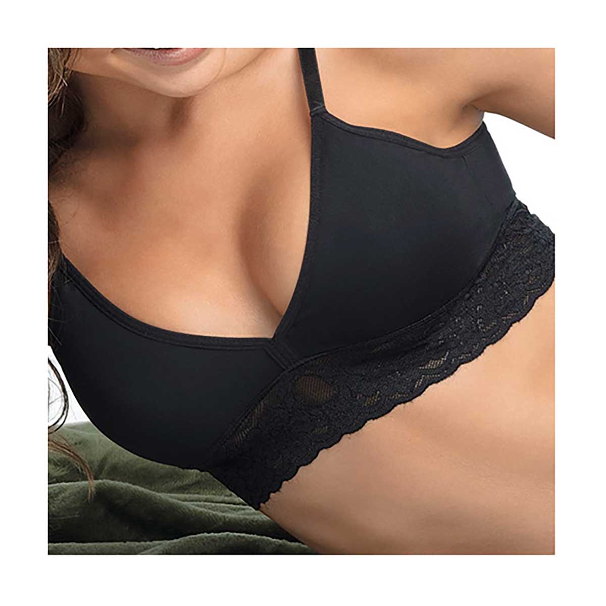 Sutiã confortável com tacas duplas e cos em renda elástica, sem aro e sem bojo, abertura interna que permite o encaixe de espuma removível (não incluída)