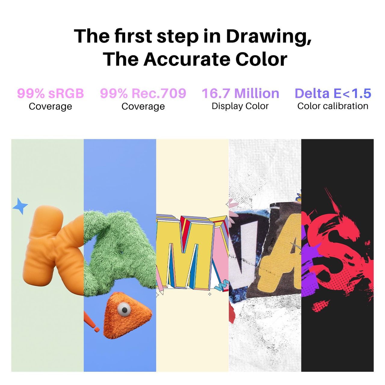 O Tablet De Arte Digital Kamvas 16 (geração 3) Apresenta Uma Tela De Alta Qualidade Que Cobre 99% Das Gamas De Cores sRGB E Rec.709, Bem Como 90% Da Gama De Cores Adobe RGB. E<1,5 Garante Uma Representação Precisa Da Cor.