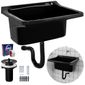 Tanque De Plástico 34l Para Lavanderia Preto + Sifão Universal Sanfonado + Fita Veda Rosca