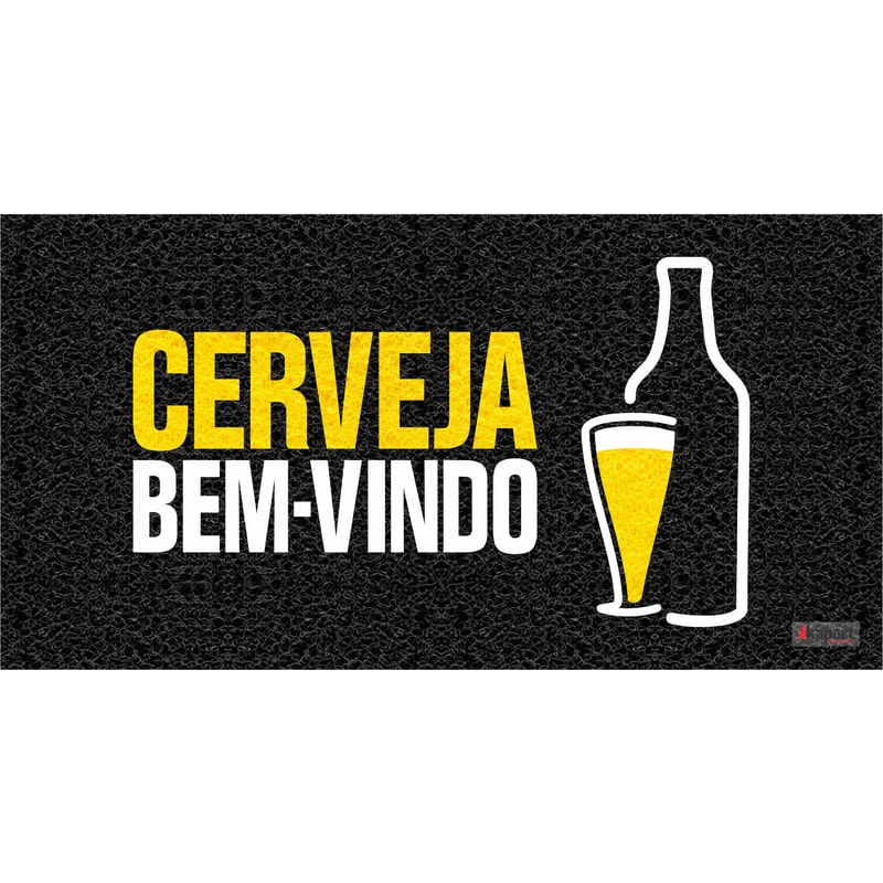 Tapete Capacho Cerveja Bem-Vindo 62X32..Modelo: CERVEJA BEM-VINDO.Medida: 62cmx32cm.Tapete emborrachado, antiderrapante, antichamas e antifungos..Lavável, excelente durabilidade, pode ser usado em área interna e externa..Decorativo e principalmente funcional para limpar os calçados. Cor principal:Preto Ambientes recomendados:Entrada É artesanal:Não Largura:32 cm Comprimento:62 cm marca:Kapart