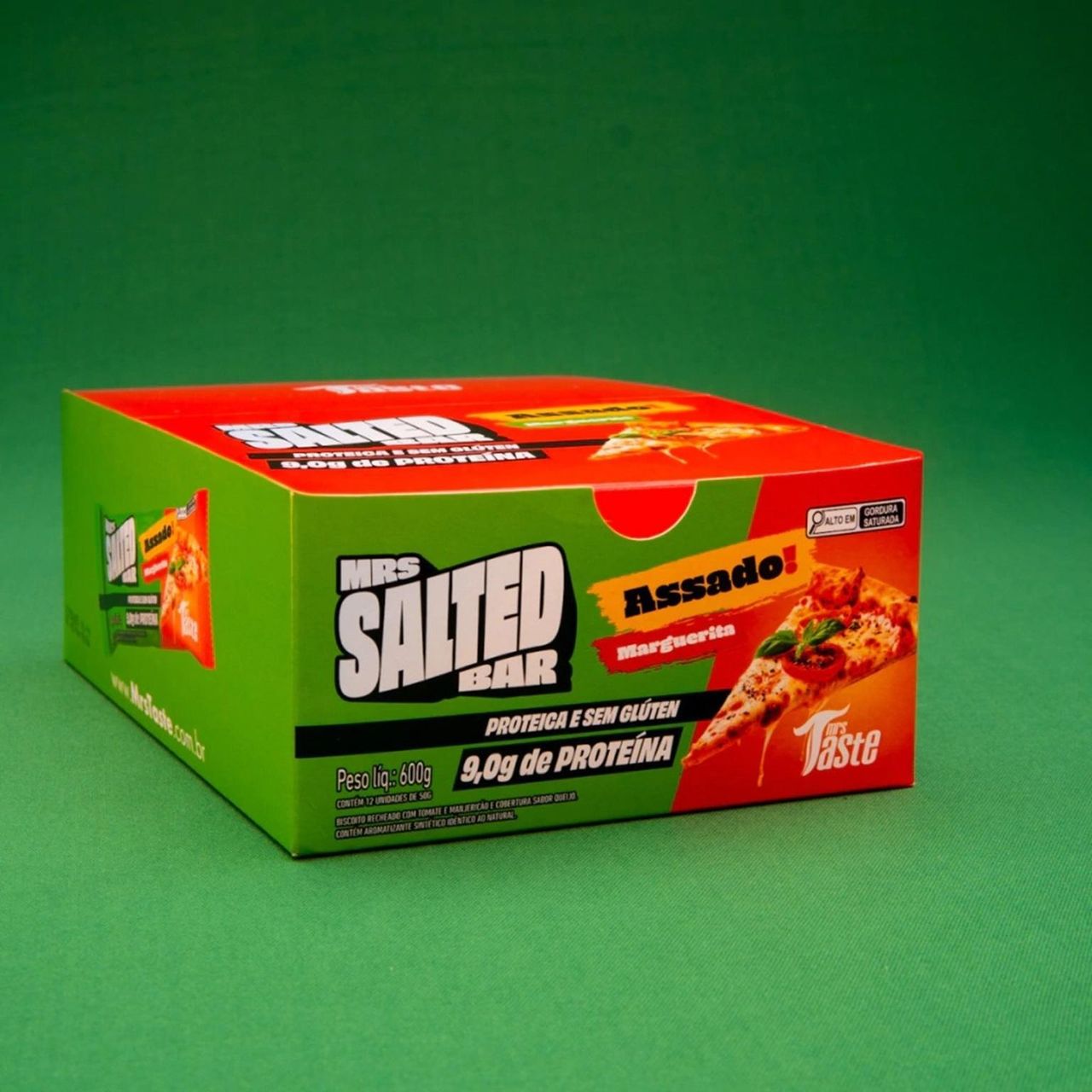 Benefícios: Taste Cookie Bar Salted Marguerita assada com 9g de proteína e sem glúten. Biscoito recheado com tomate e manjericão e cobertura sabor queijo.