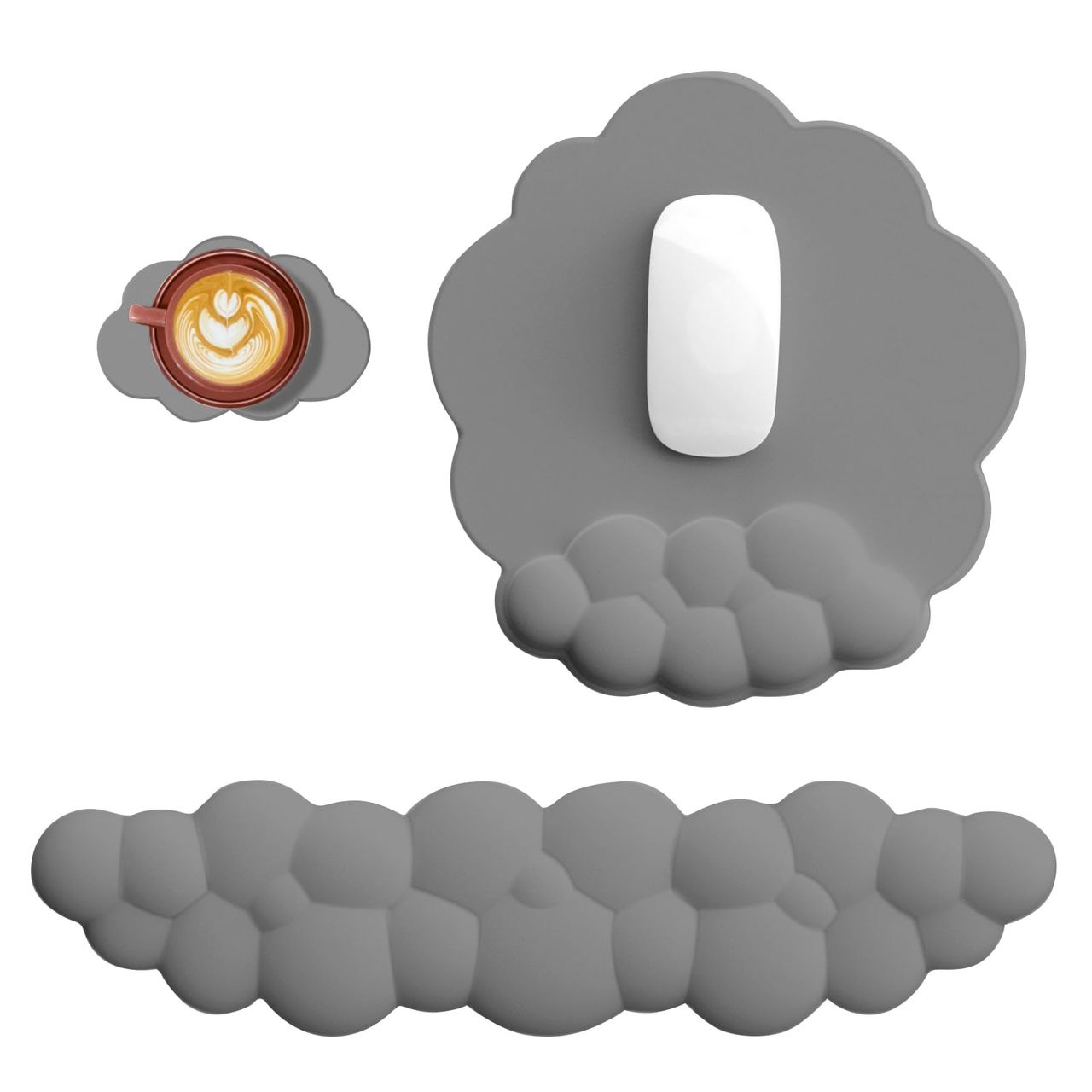 - Design Em Forma De Nuvem: Este Conjunto De Teclado Para Descanso De Pulso E Mouse Pad Apresenta Um Design Exclusivo Em Forma De Nuvem, Oferecendo Um Ajuste Ergonômico Que Suporta Perfeitamente Suas Mãos. A Superfície Texturizada Melhora O Fluxo De Ar, Mantendo Seus Pulsos Frescos E Confortáveis, Evitando Suor Ou Desconforto Durante O Uso Prolongado. Elegantes E Funcionais, Esses Acessórios De Mesa Estéticos São O Companheiro Perfeito Para Sessões De Trabalho E Estudo, Adicionando Um Toque De Charme Ao Seu Espaço De Trabalho