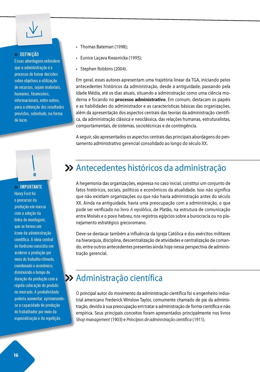 O livro aborda os principais conceitos e processos estudados nos cursos técnicos das áreas de Administração, Recursos Humanos, Marketing, Vendas, Secretariado e Transações Imobiliárias, entre outros. Com projeto gráfico e pedagógico totalmente diferenciados em relação aos concorrentes, tem a chancela do Instituto Federal do Rio Grande do Sul.Possui material de apoio com cases de grandes empresas e dicas para a complementação dos estudos no hotsite da série (clique no ícone).Este livro é uma parceria da Bookman Editora com o IFRS (Instituto Federal de Educação, Ciência e Tecnologia do Rio Grande do Sul).