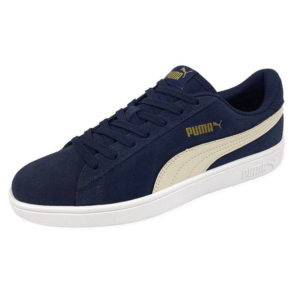 Especificações tênis Puma Smash V2 Tapioca Gold White   parte Superior em Camurça Com Detalhes Sintéticos, solado De borracha. valor Referente 367147-37